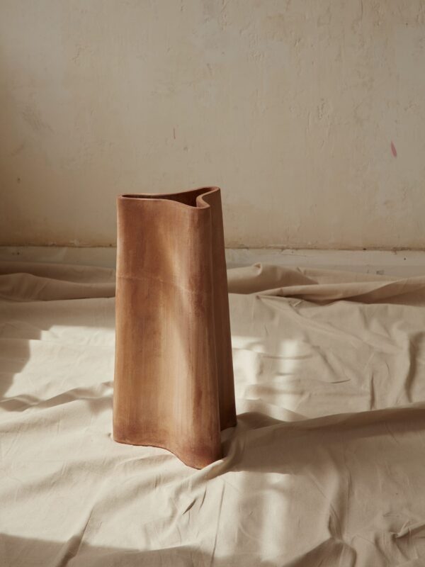 The collection included the Agra Rug, in ginger, its deep cut pile catching the light to bring warmth and quiet elegance; and our Custom Sofa, upholstered in Tuscan Beige hemp – a modular piece that combines durability with natural tactility. Lighting came from Sozou Studio’s Large Pillow Floor Lamp, with its sculptural oak veneer frame and kozo paper shade, and the Tux Table Lamp by Volker Haug Studio, a poetic interplay of glass, brass and fibreglass.