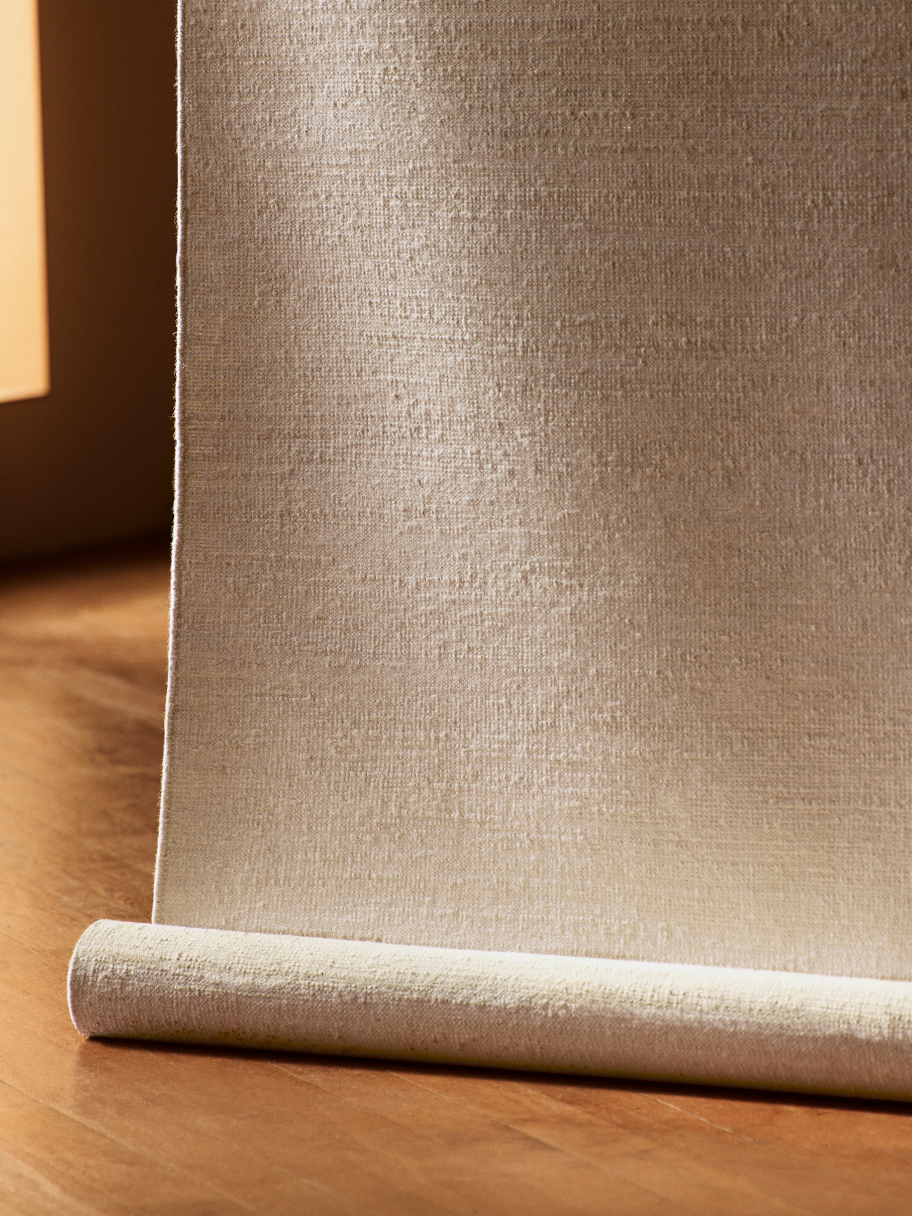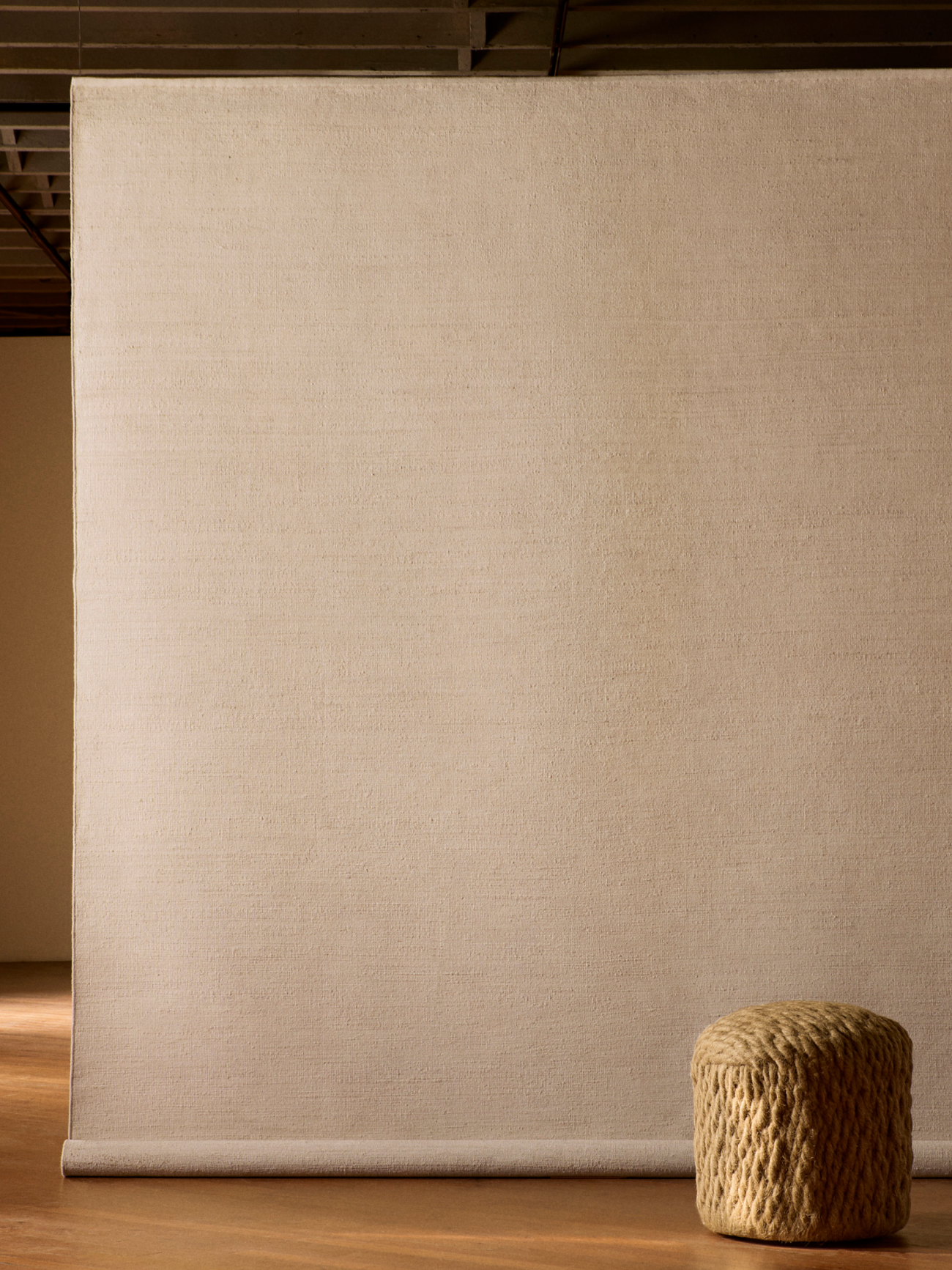 Laying down legacy, Aerie possesses a quiet, intentional strength. Its taut linen warp against a weft woven from alternating wool and jute yarns reveals tonal variations speckled across its fine grid-like surface that invite tactile exploration. Deceptively robust, it is ideal for busy areas of the home.