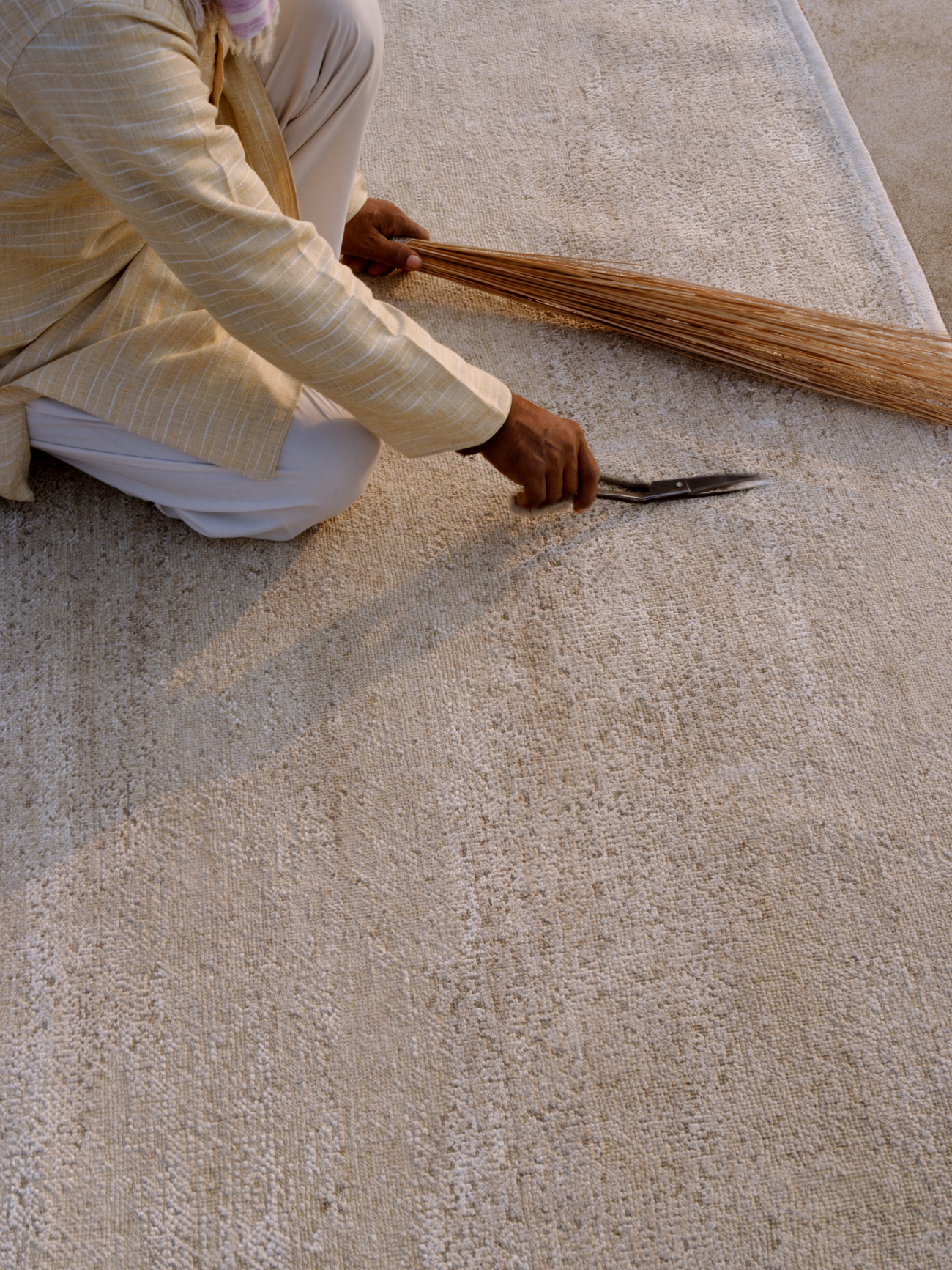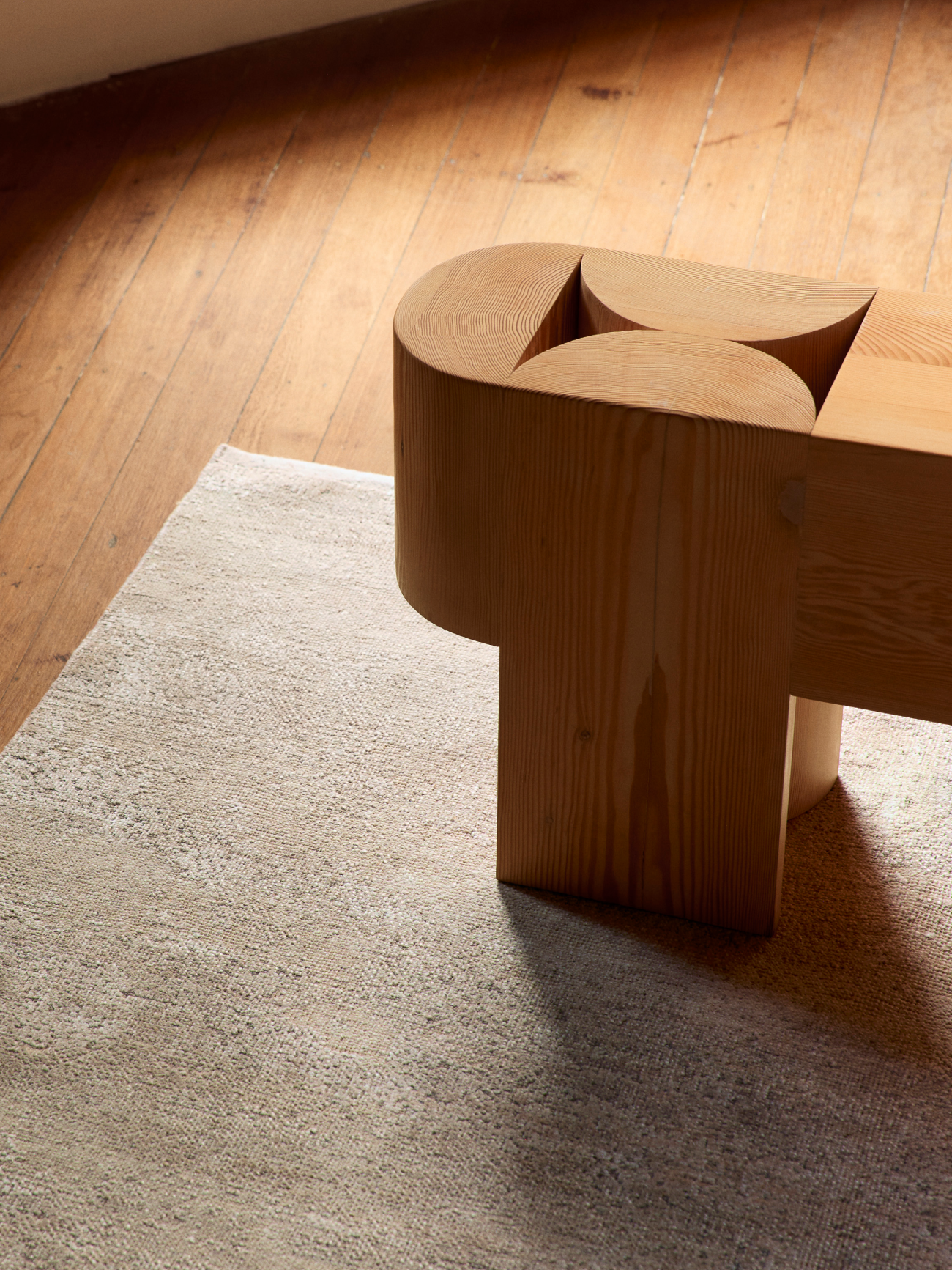 Embodying subtle luminosity, Alma features a lustrous texture and nuanced tonal gradations that ensure no two rugs are exactly the same. Hand-knotted with silk and wool, this ultra-low pile rug reflects a gentle patina, serving as a reminder that all things shift and transform over time.