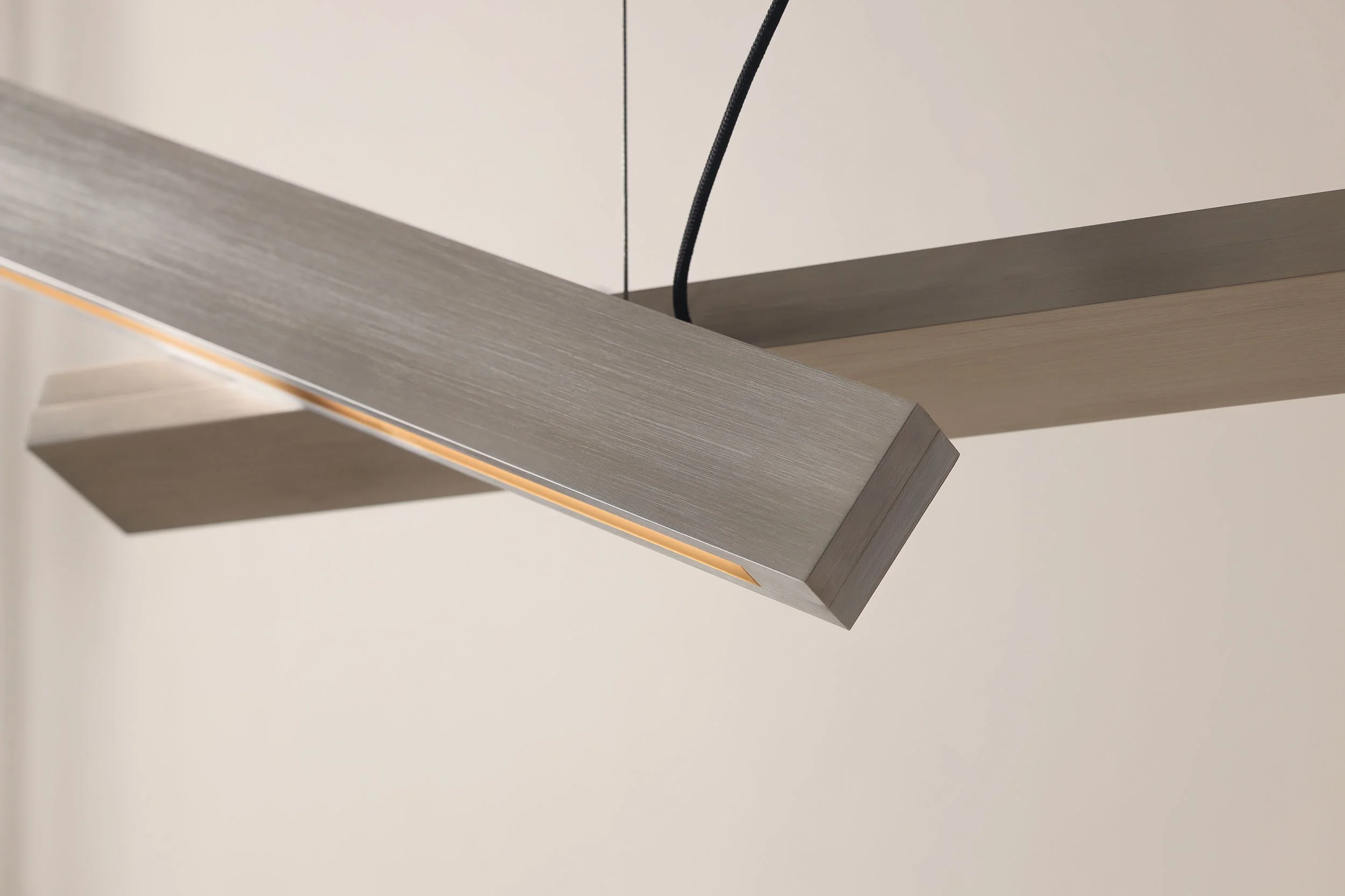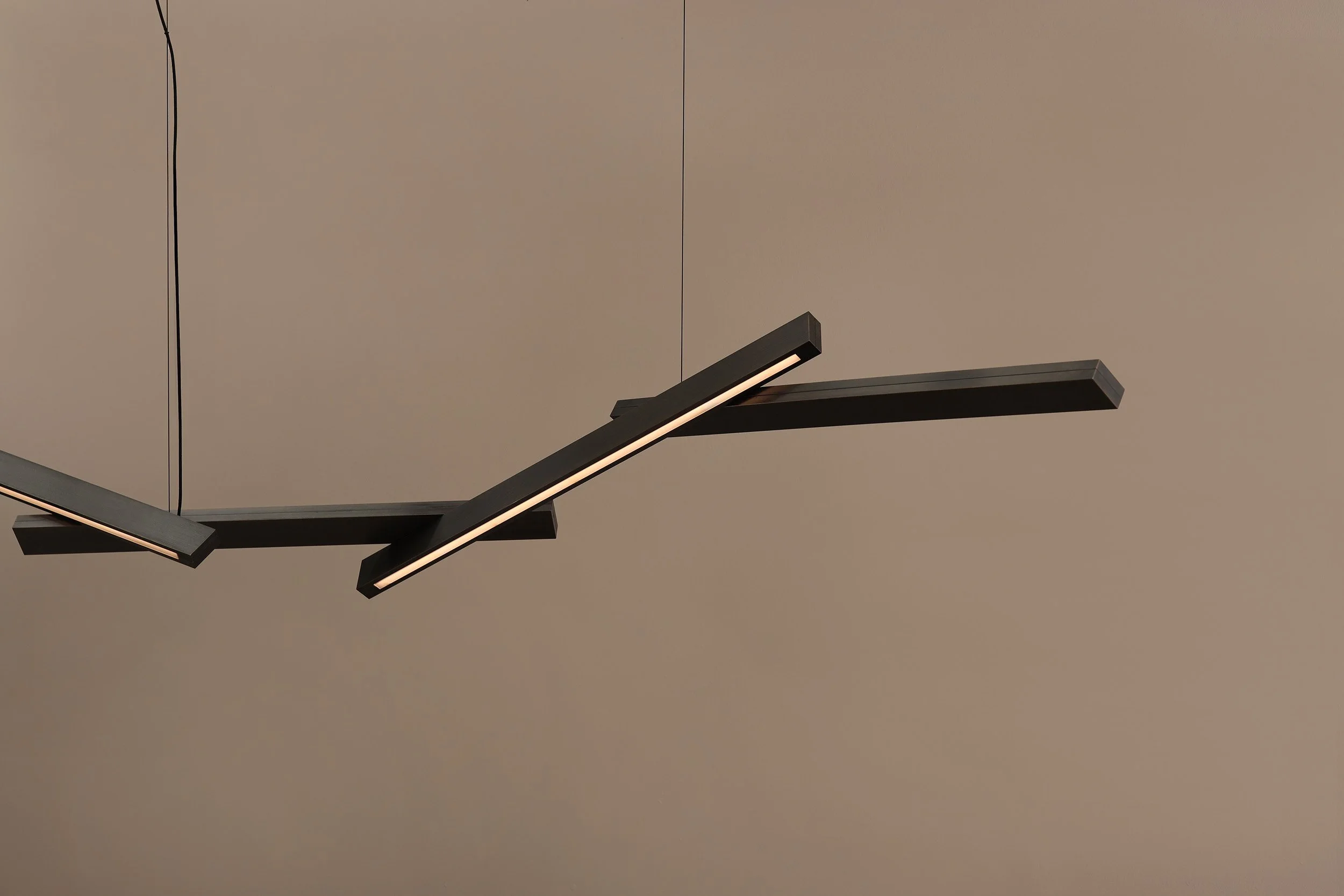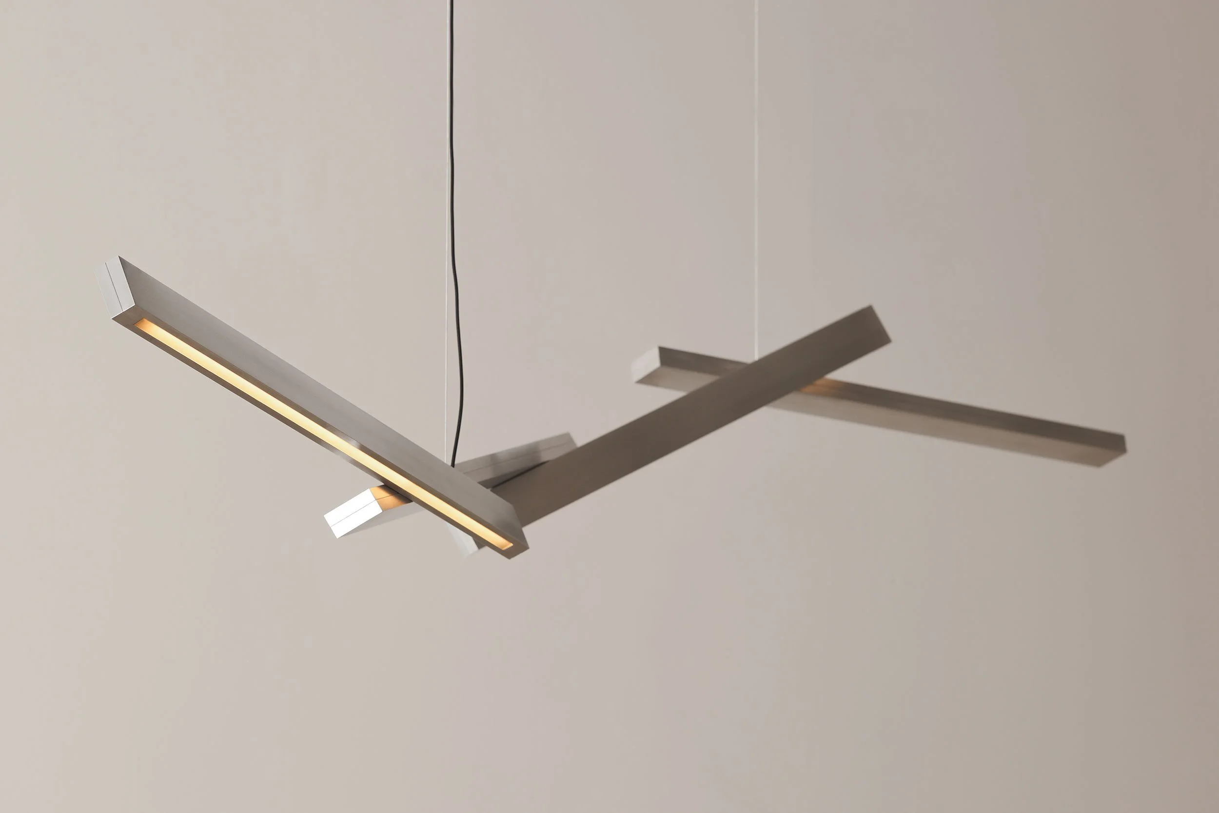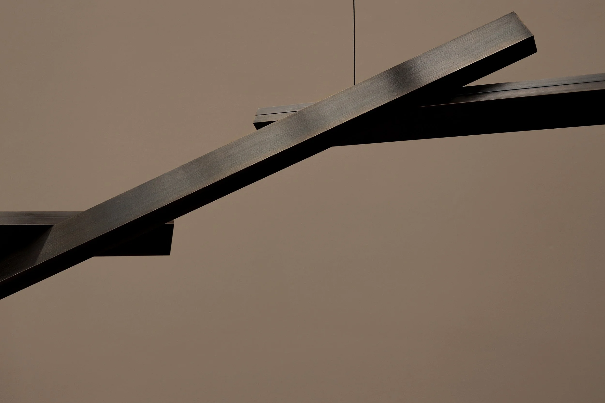 The Bloc Pendant takes inspiration from classic minimalist sculpture from the 1960s, re-imagined through an interplay of solid, intersecting blocks. Its asymmetrical design allows for both left and right combinations, making it adaptable to a range of spatial compositions.