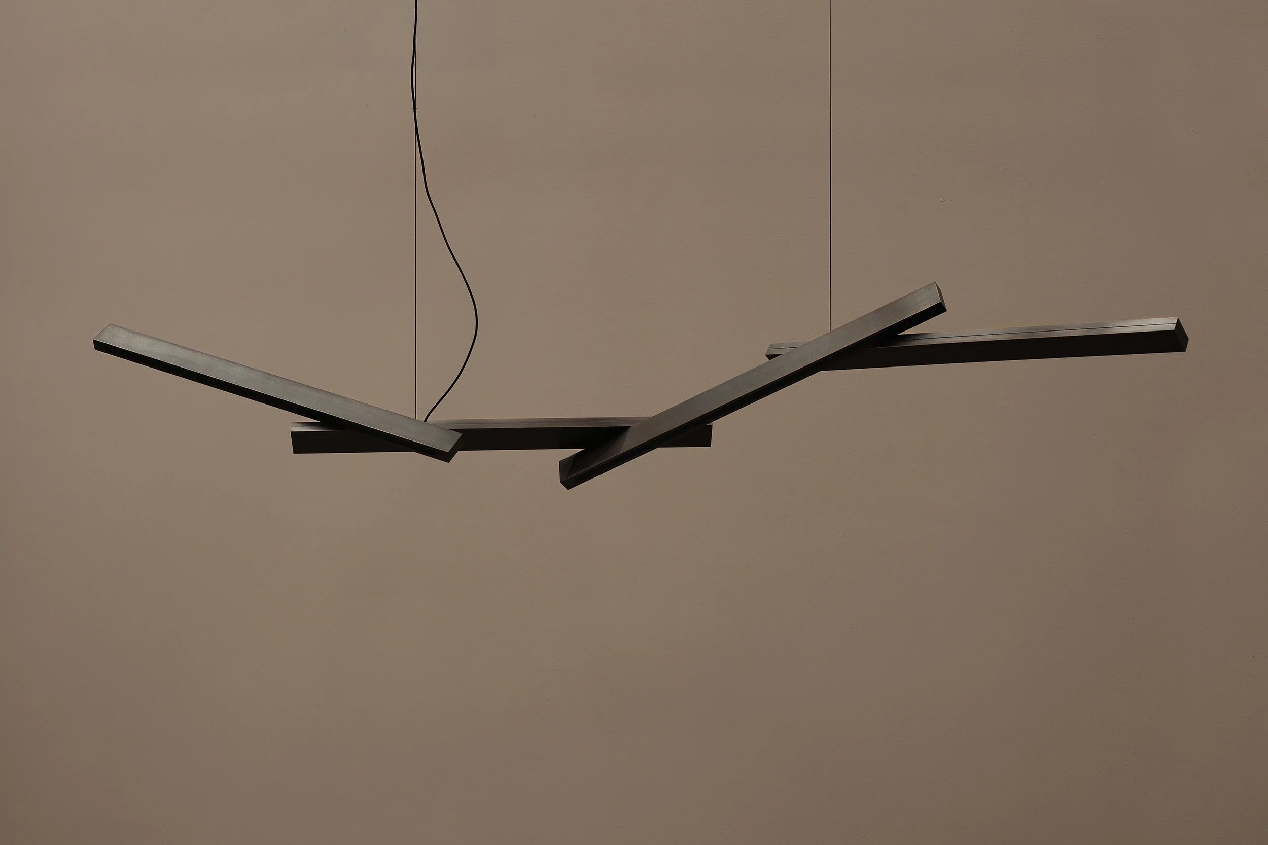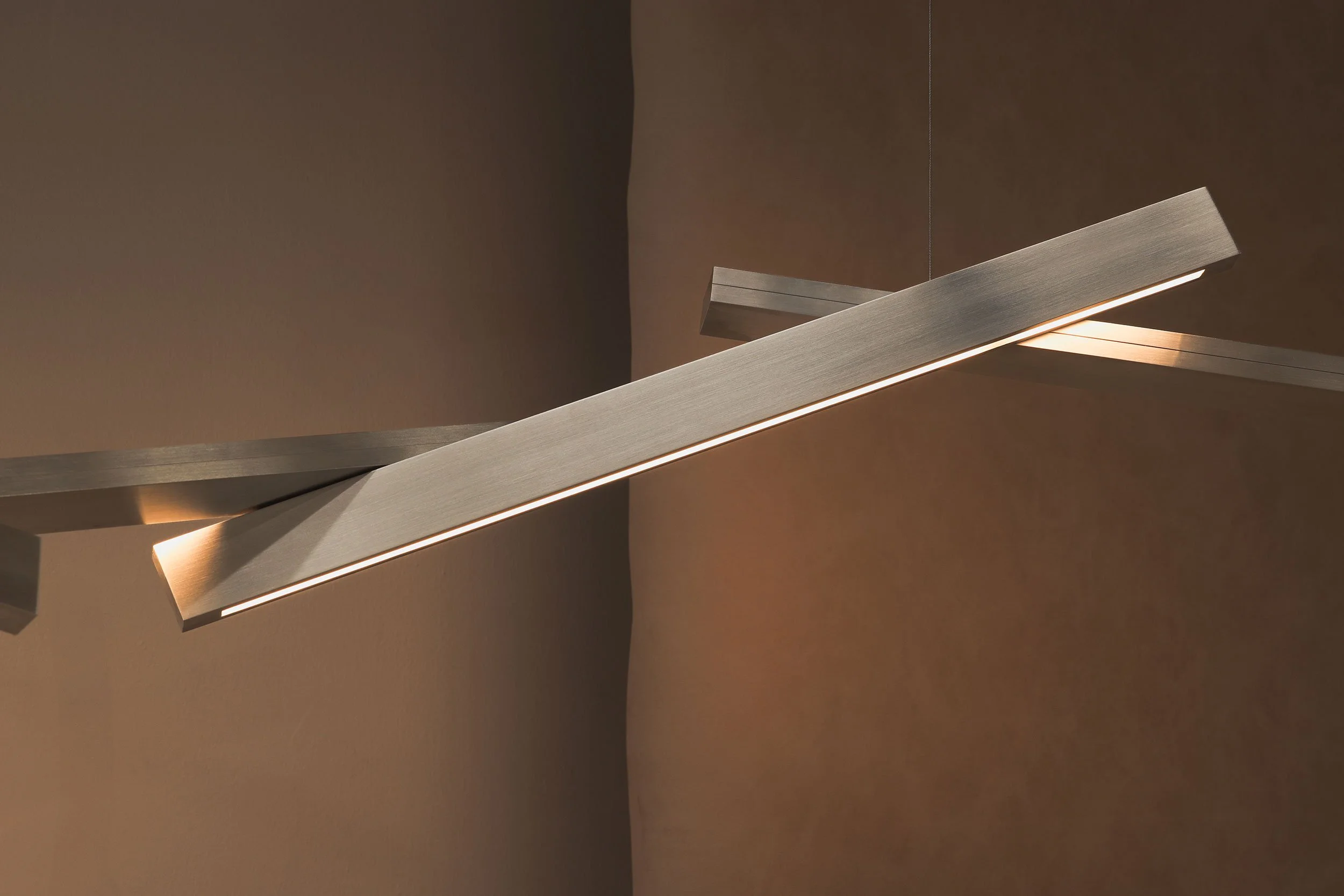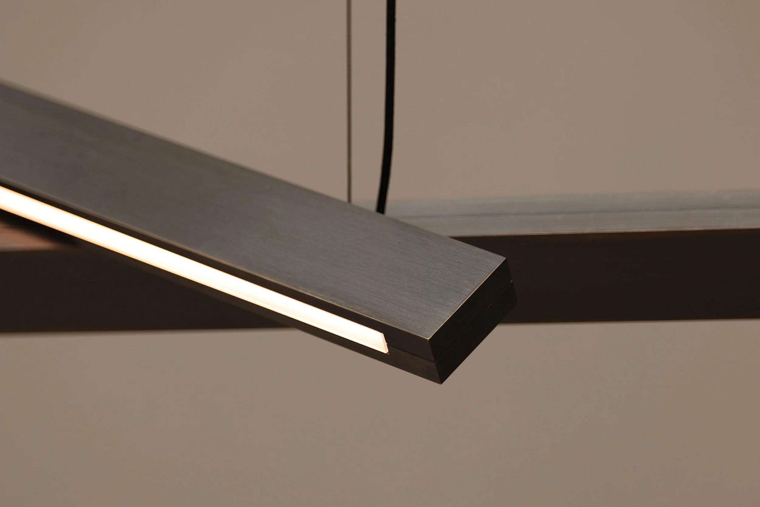 The Bloc Pendant takes inspiration from classic minimalist sculpture from the 1960s, re-imagined through an interplay of solid, intersecting blocks. Its asymmetrical design allows for both left and right combinations, making it adaptable to a range of spatial compositions.
