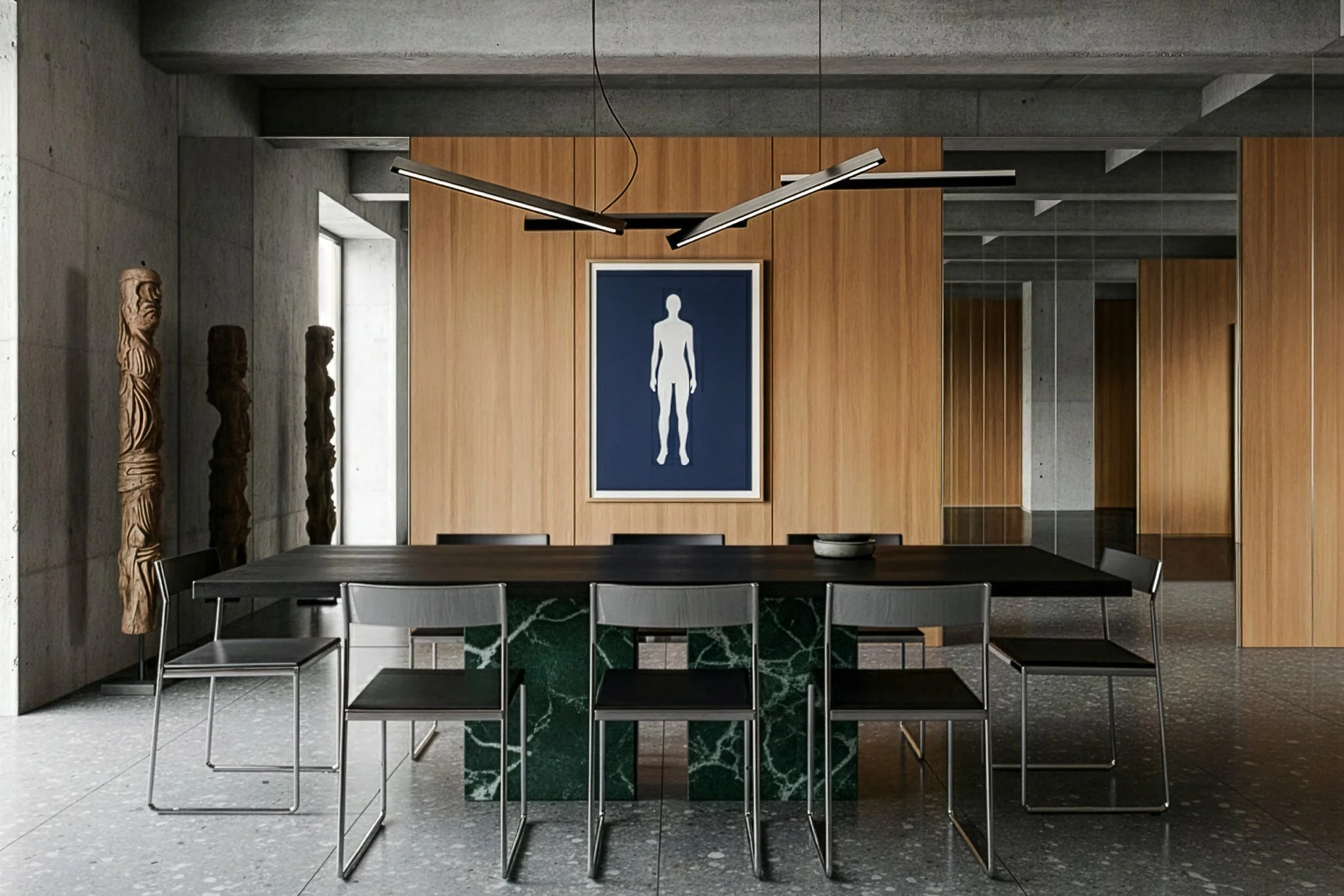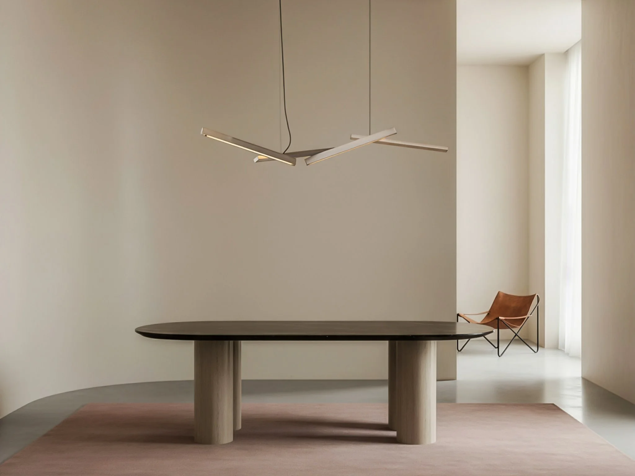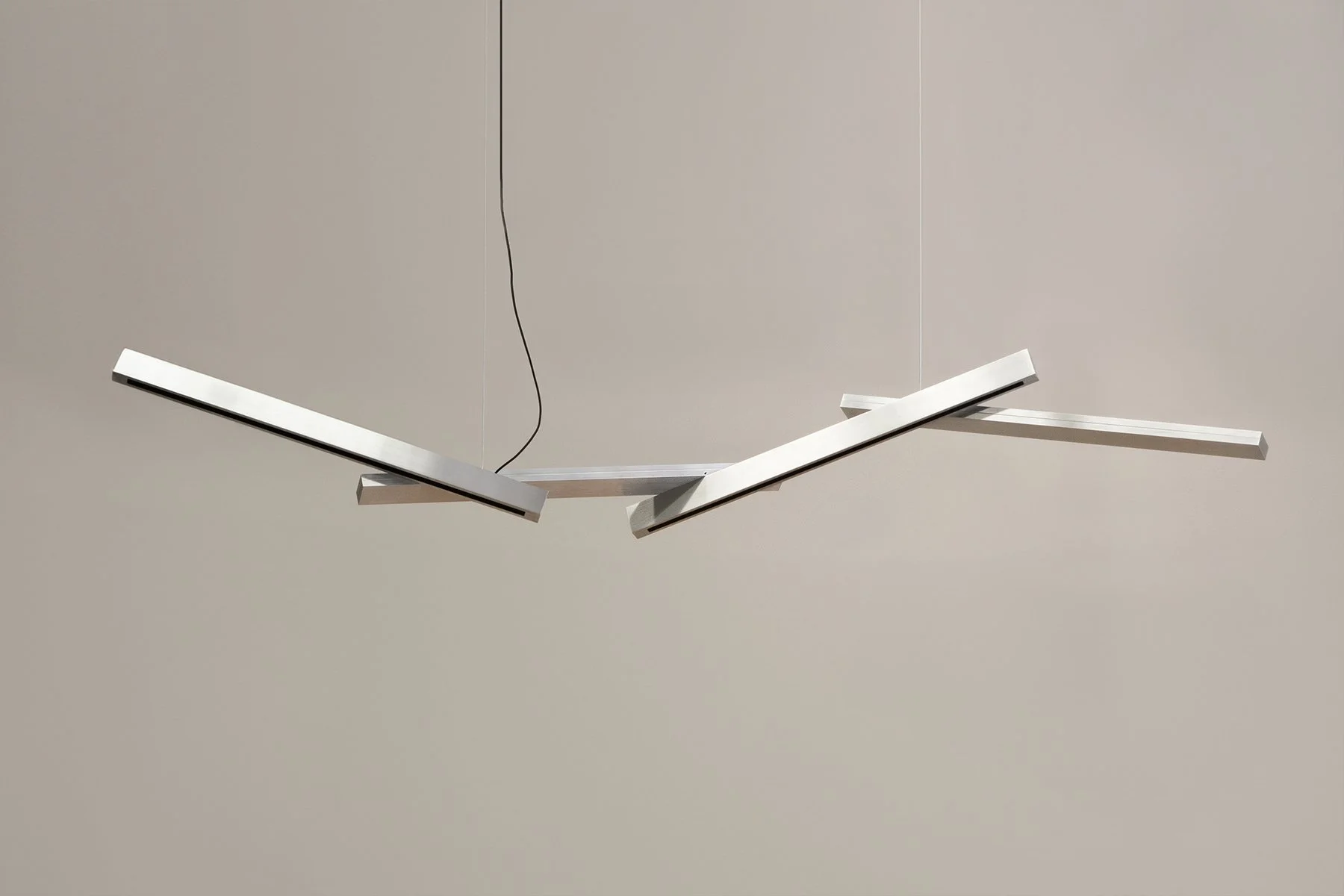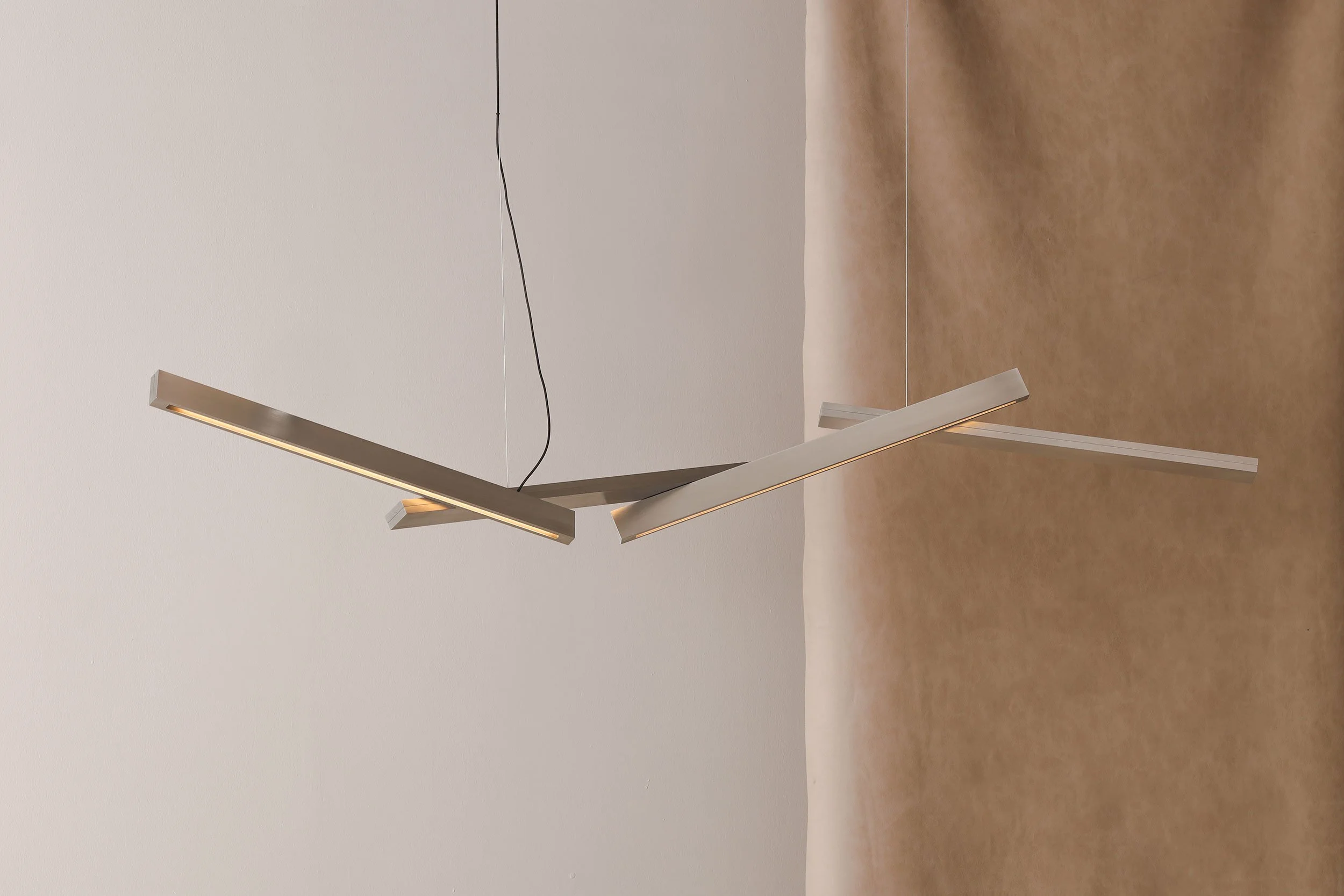 The Bloc Pendant takes inspiration from classic minimalist sculpture from the 1960s, re-imagined through an interplay of solid, intersecting blocks. Its asymmetrical design allows for both left and right combinations, making it adaptable to a range of spatial compositions.