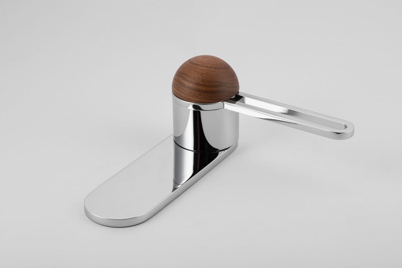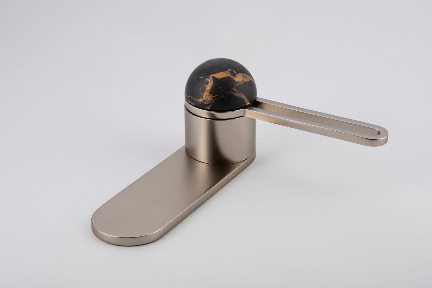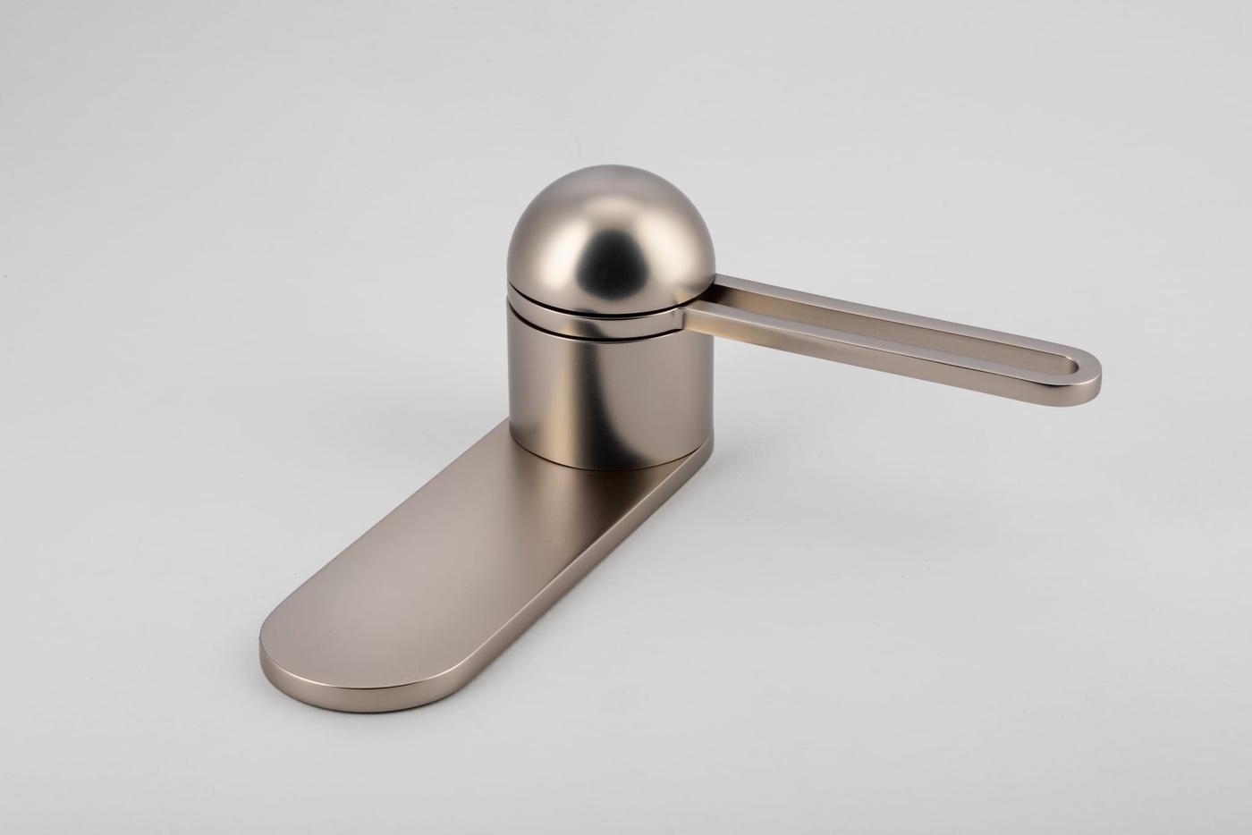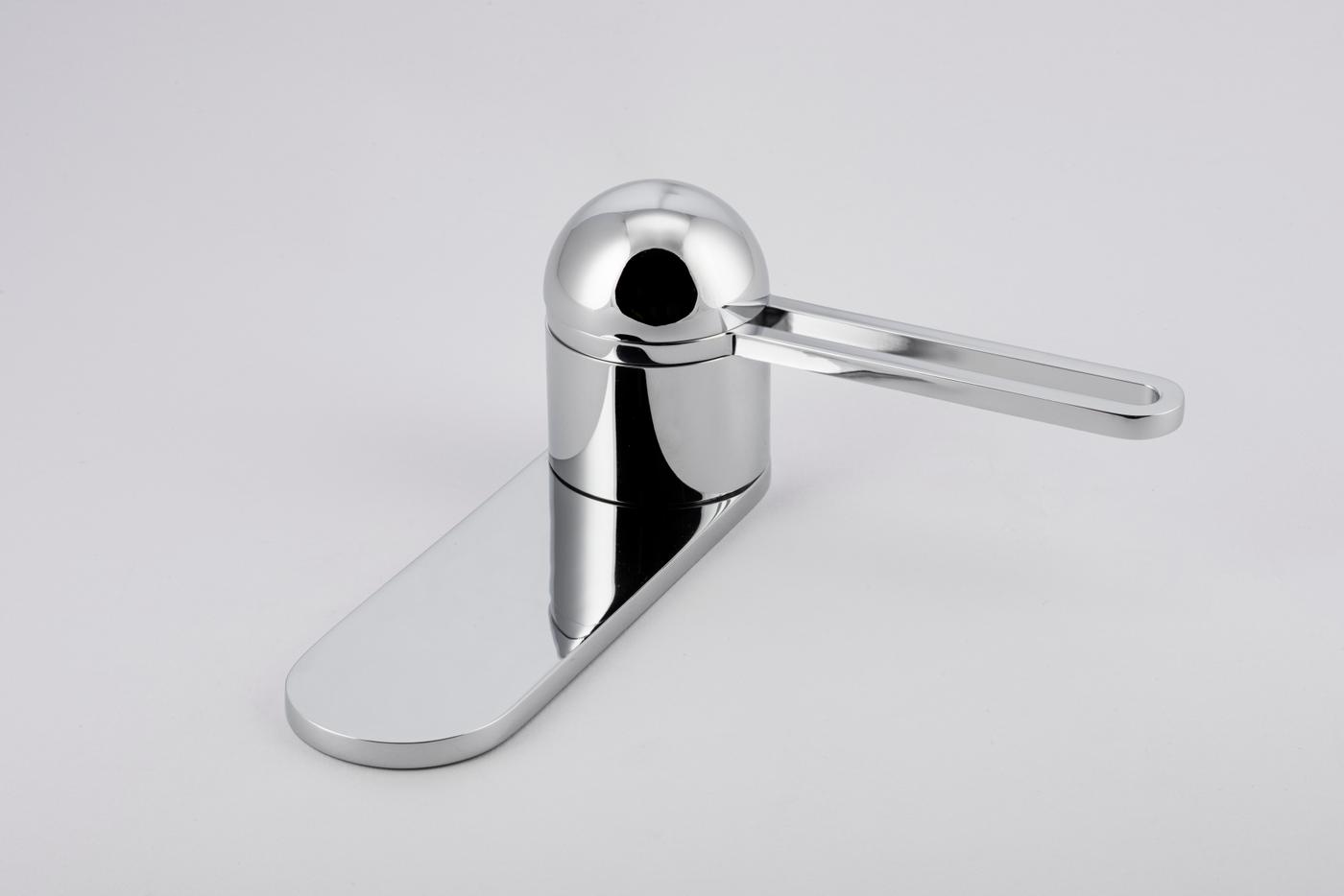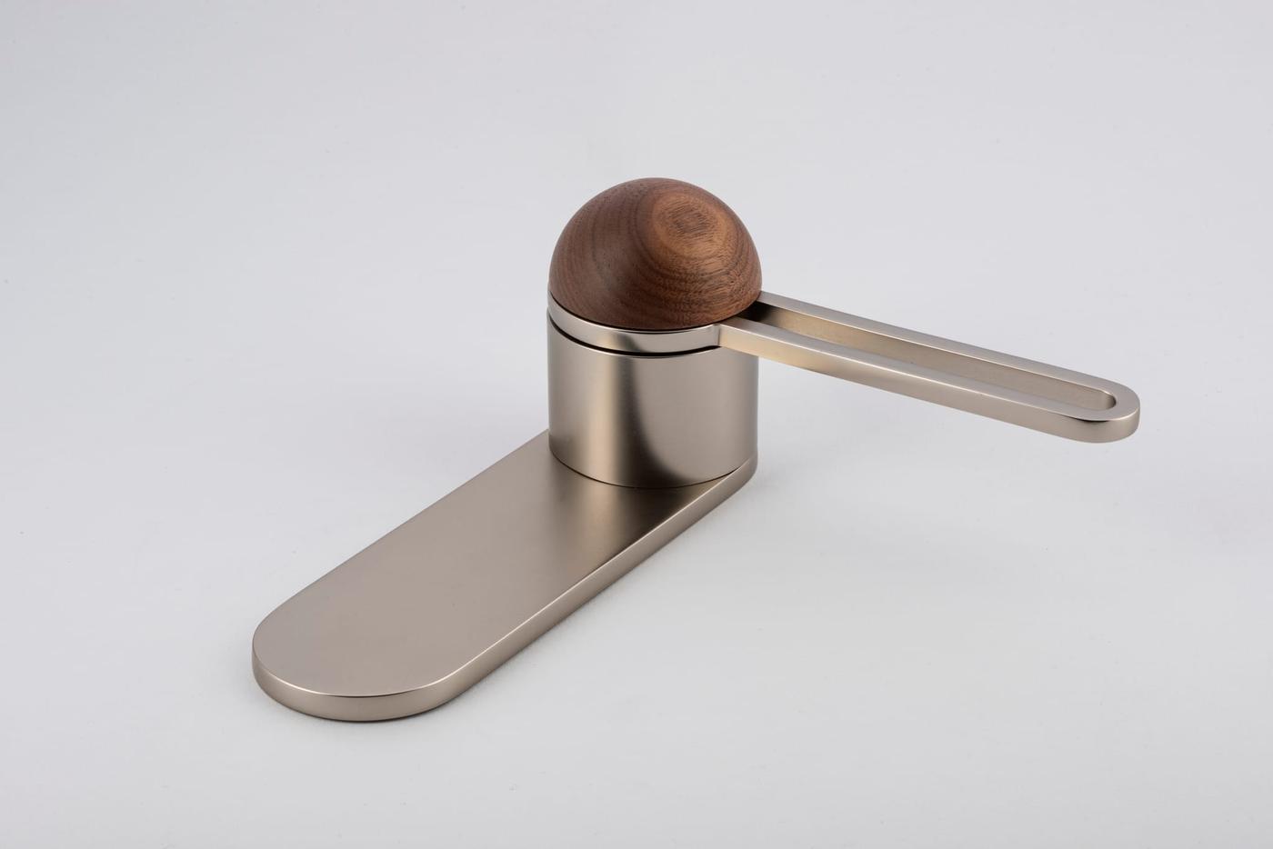 The H01 Lever on Backplate design showcases an open-frame lever atop an oval backplate. With an option for an integrated lock mechanism, the design is low-profile, accented with Art Deco-inspired curves.