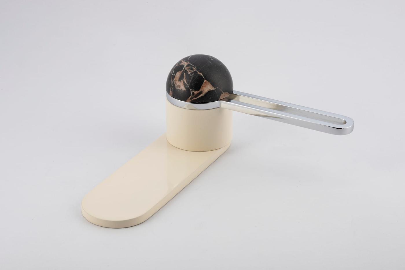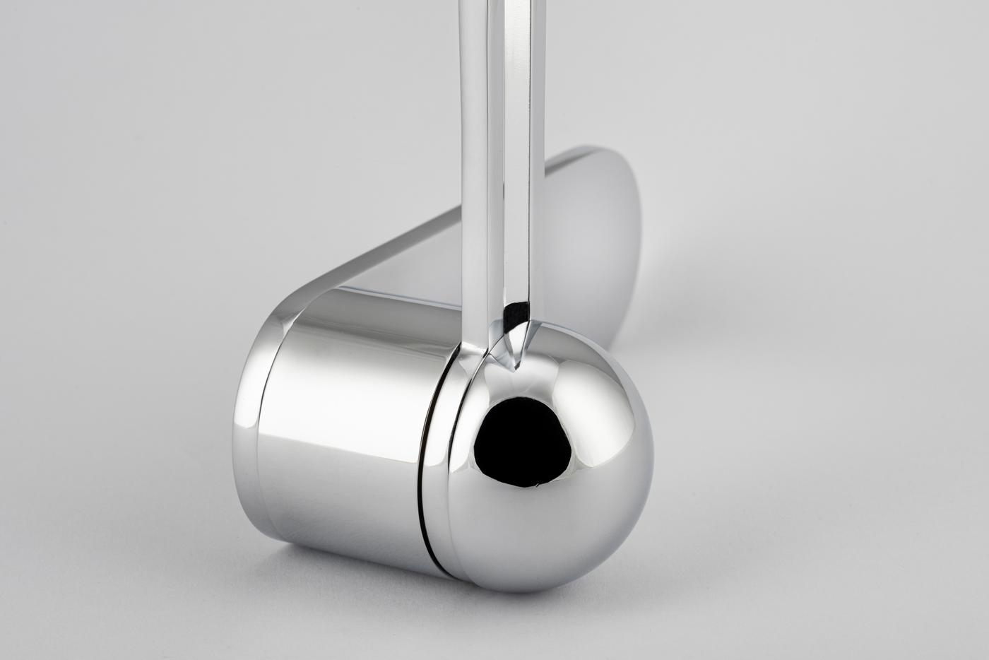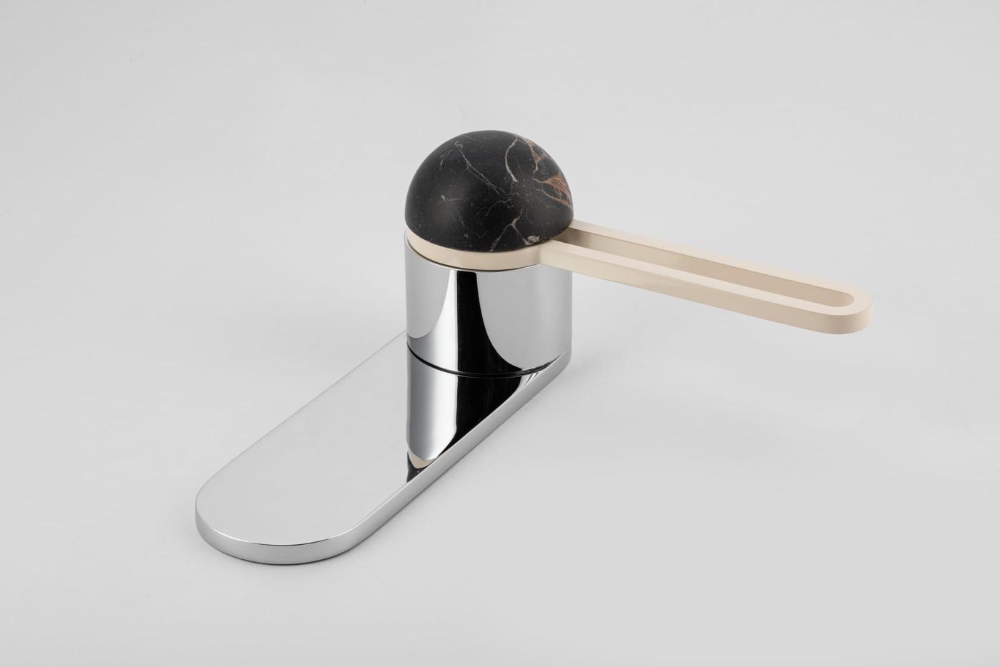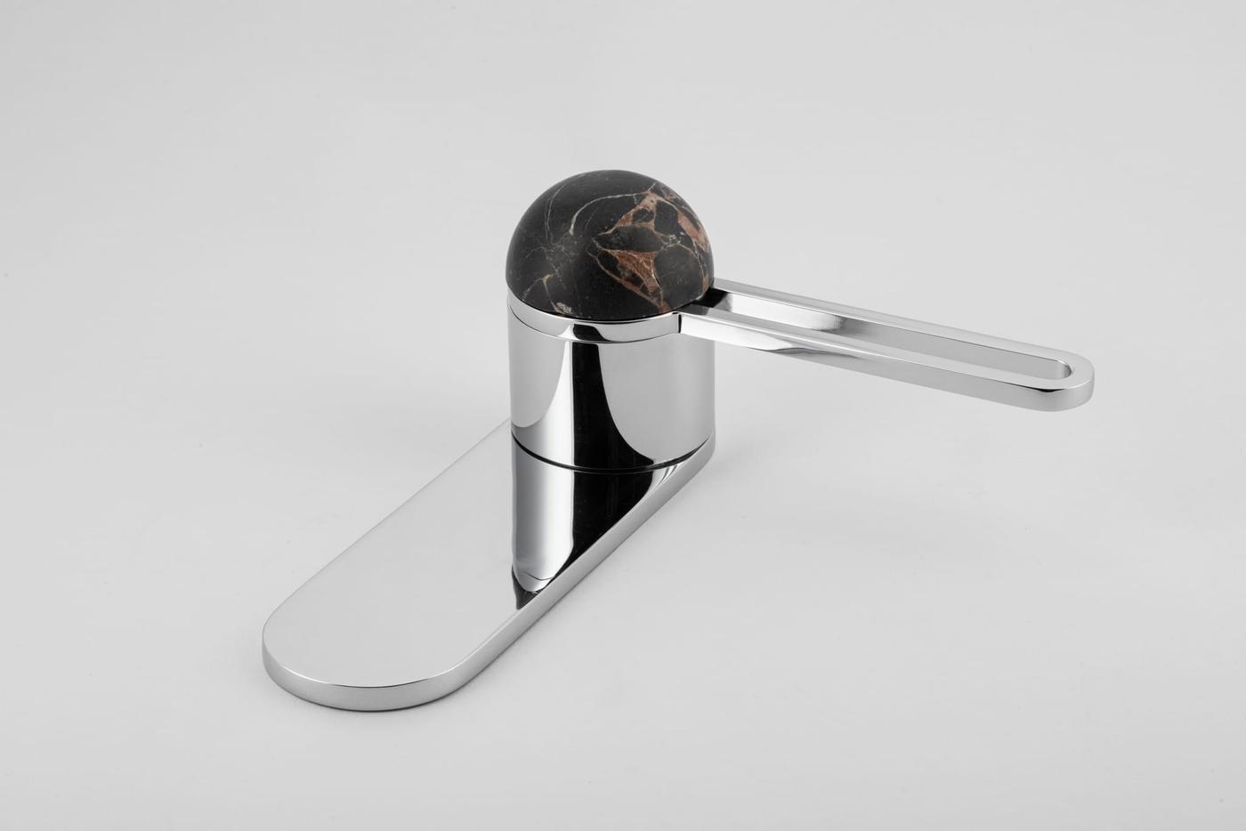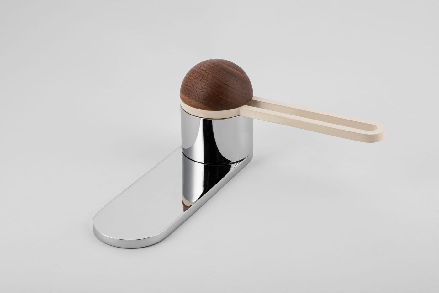 The H01 Lever on Backplate design showcases an open-frame lever atop an oval backplate. With an option for an integrated lock mechanism, the design is low-profile, accented with Art Deco-inspired curves.