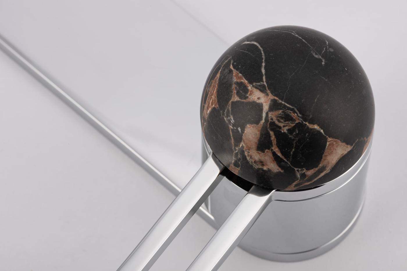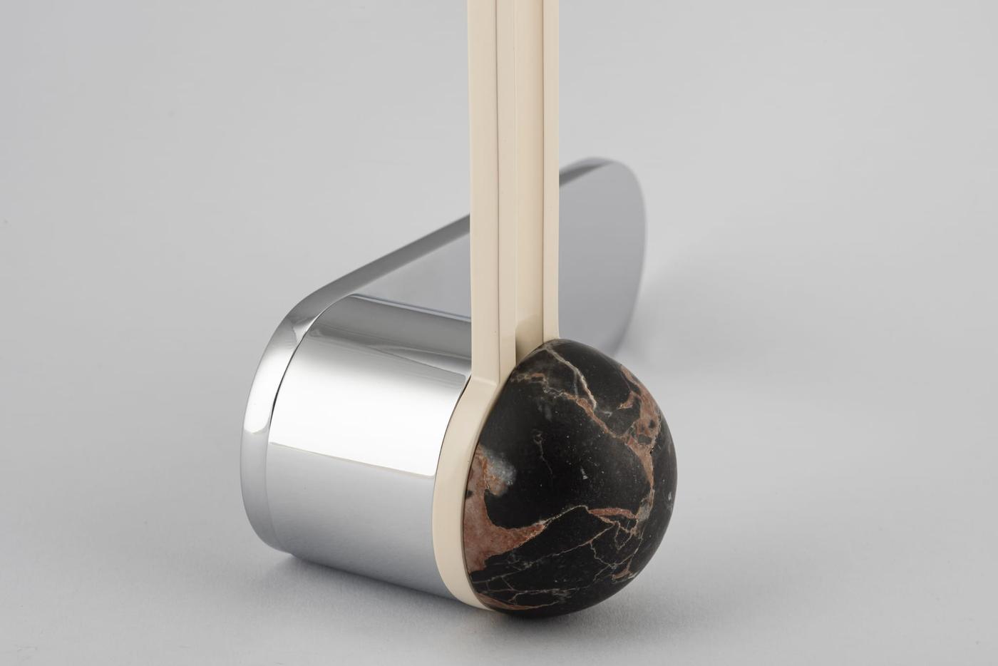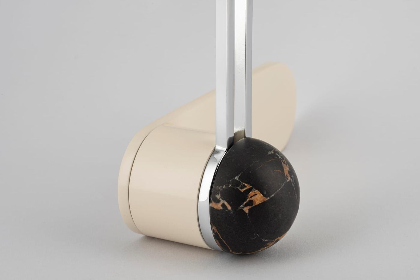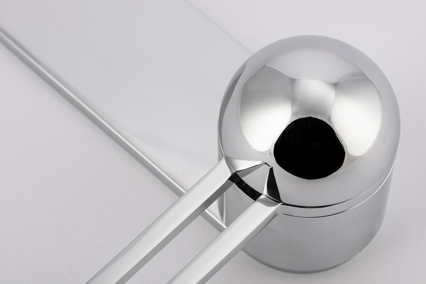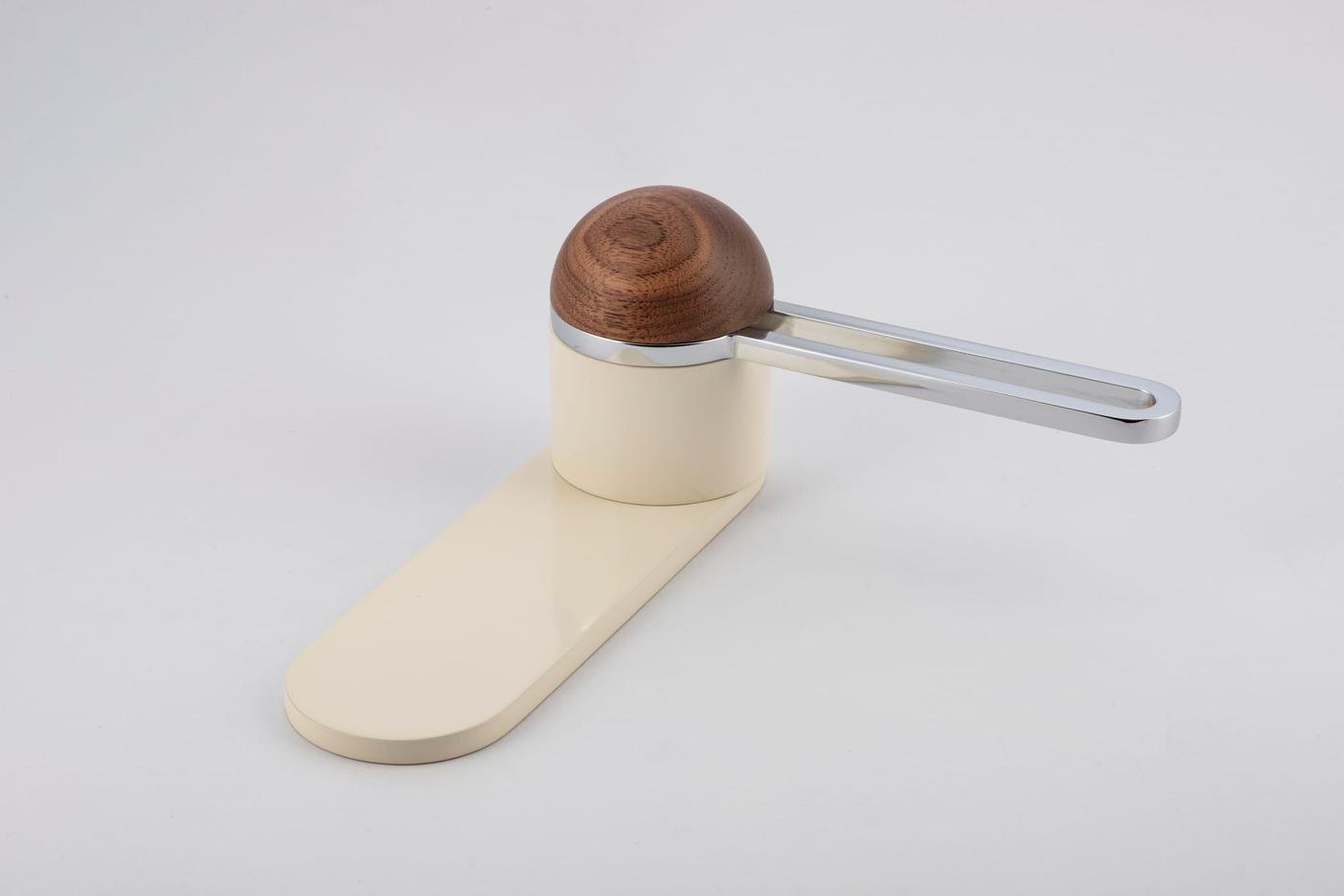 The H01 Lever on Backplate design showcases an open-frame lever atop an oval backplate. With an option for an integrated lock mechanism, the design is low-profile, accented with Art Deco-inspired curves.