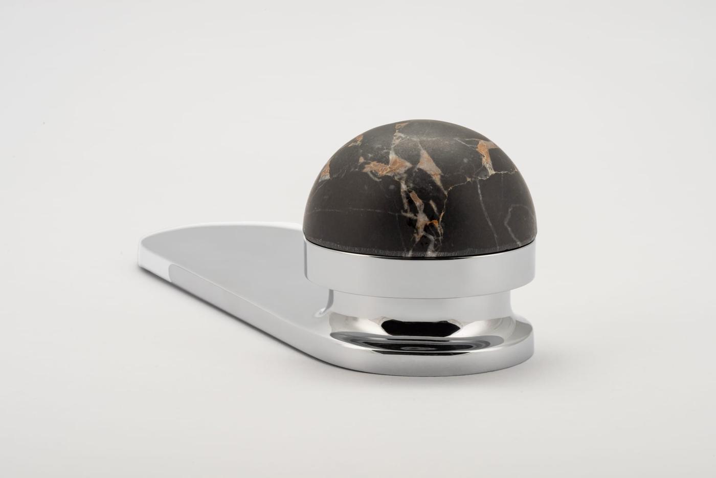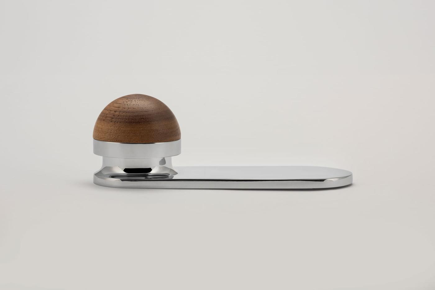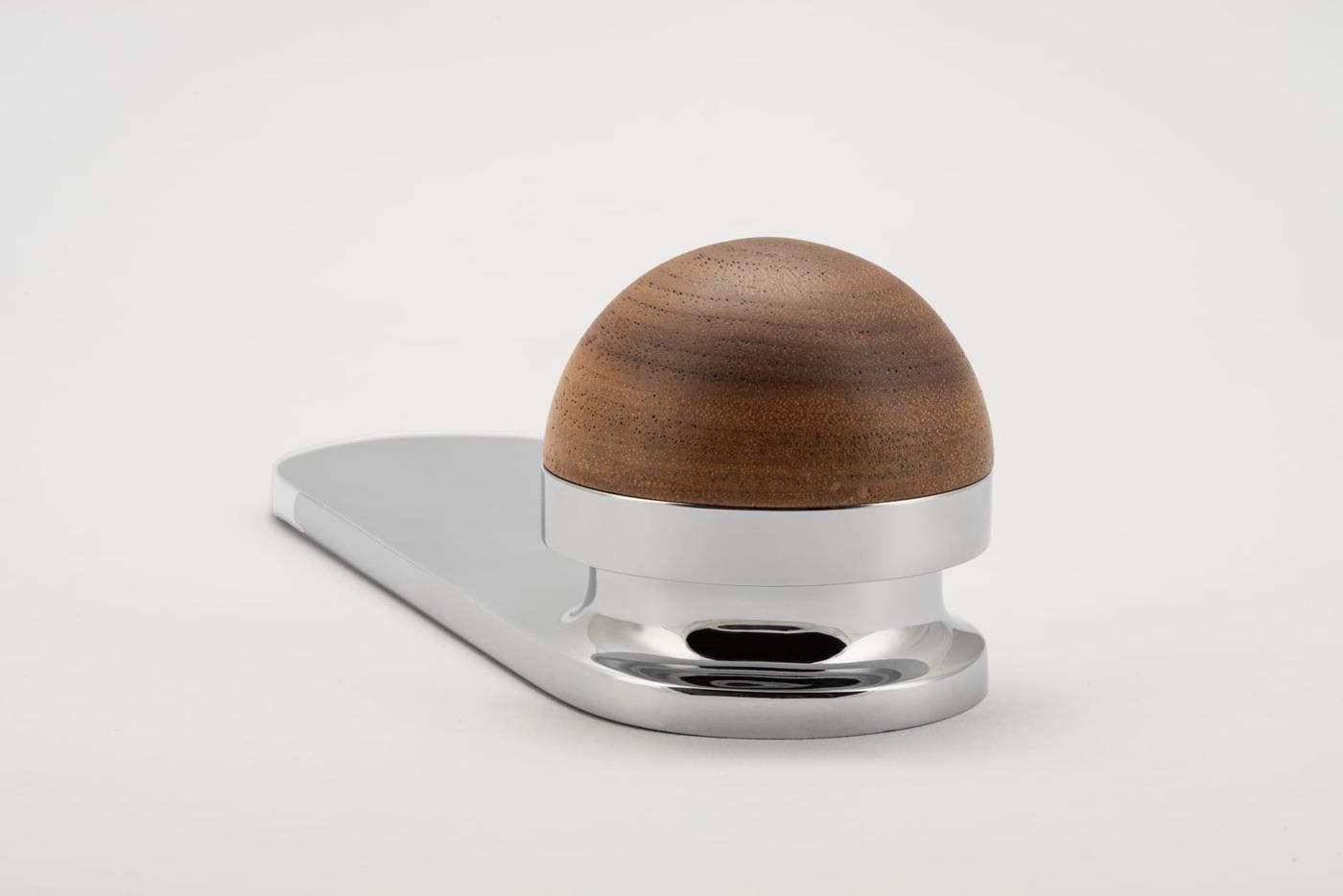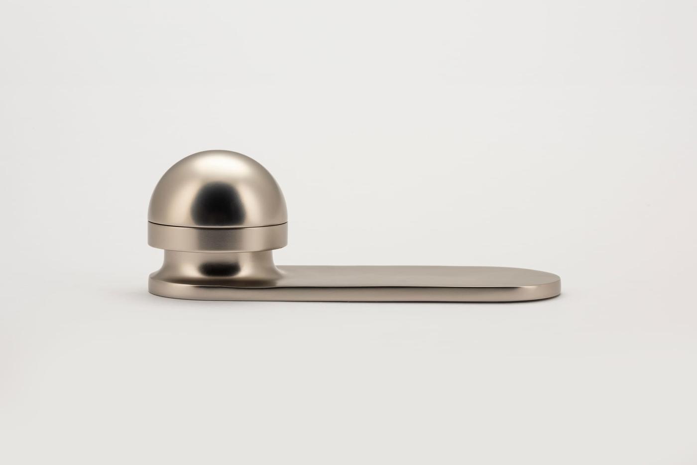 The H02 Knob on Backplate enhances the core knob design by adding a backplate extension. The combination of rounded and flat forms create a sophisticated aesthetic, also available with an optional integrated locking mechanism.