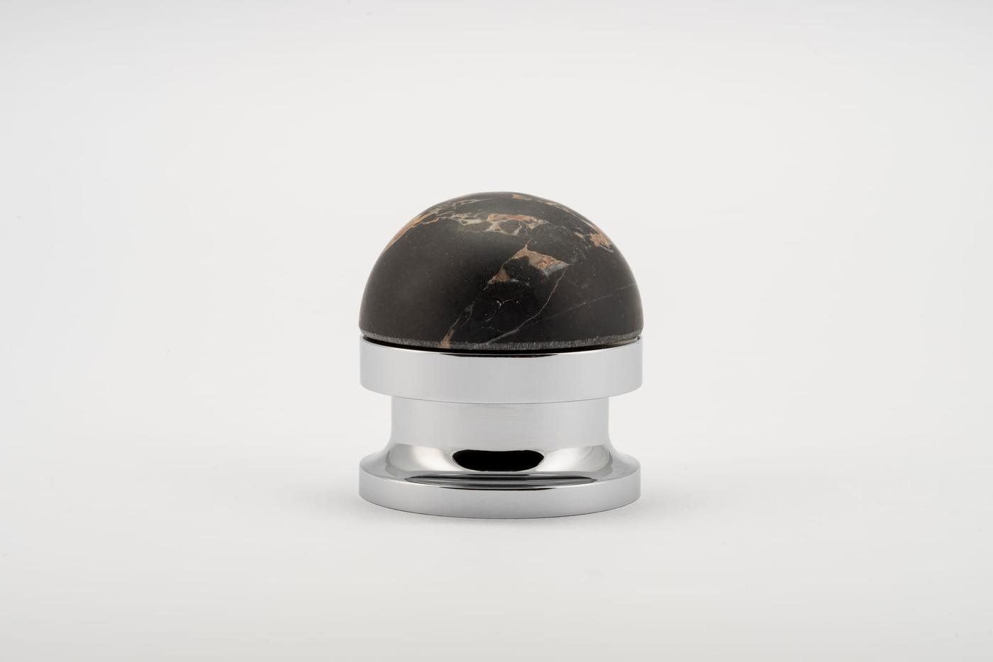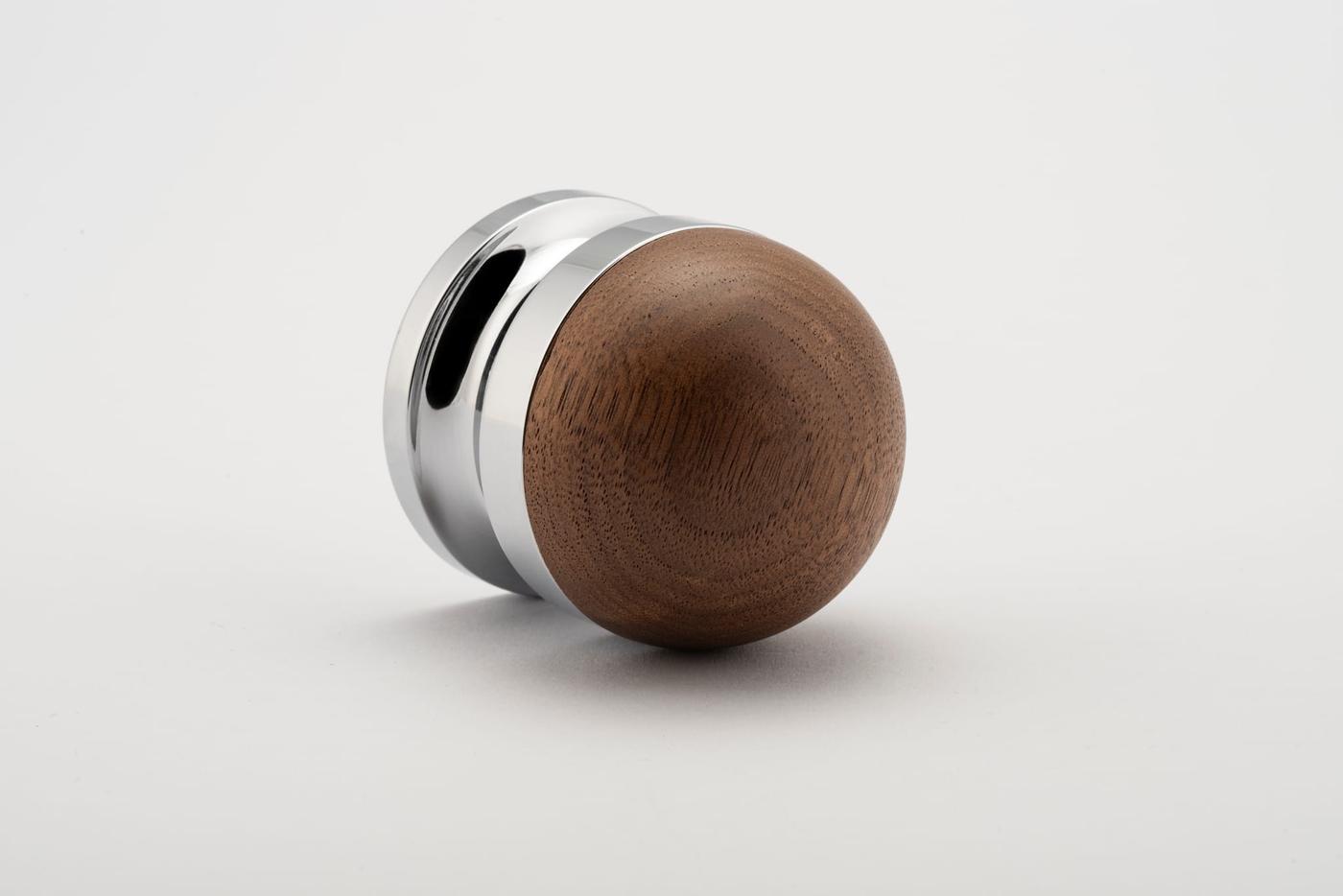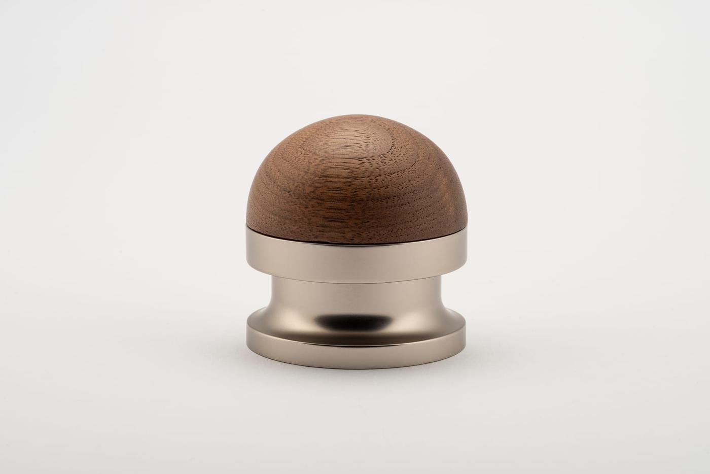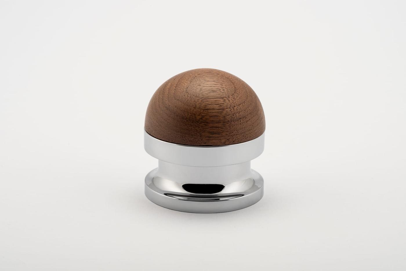 The H02 Knob on Rose is both compact and impactful, featuring a rose fitting, a connecting collar, and a sleek, dome-shaped top. Its carefully proportioned dome fits comfortably in the hand, ensuring a secure grip.