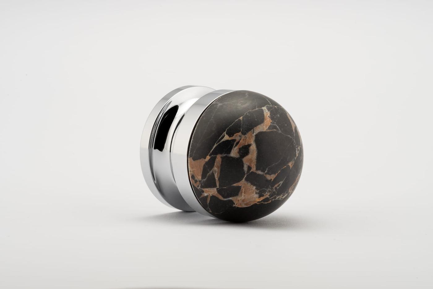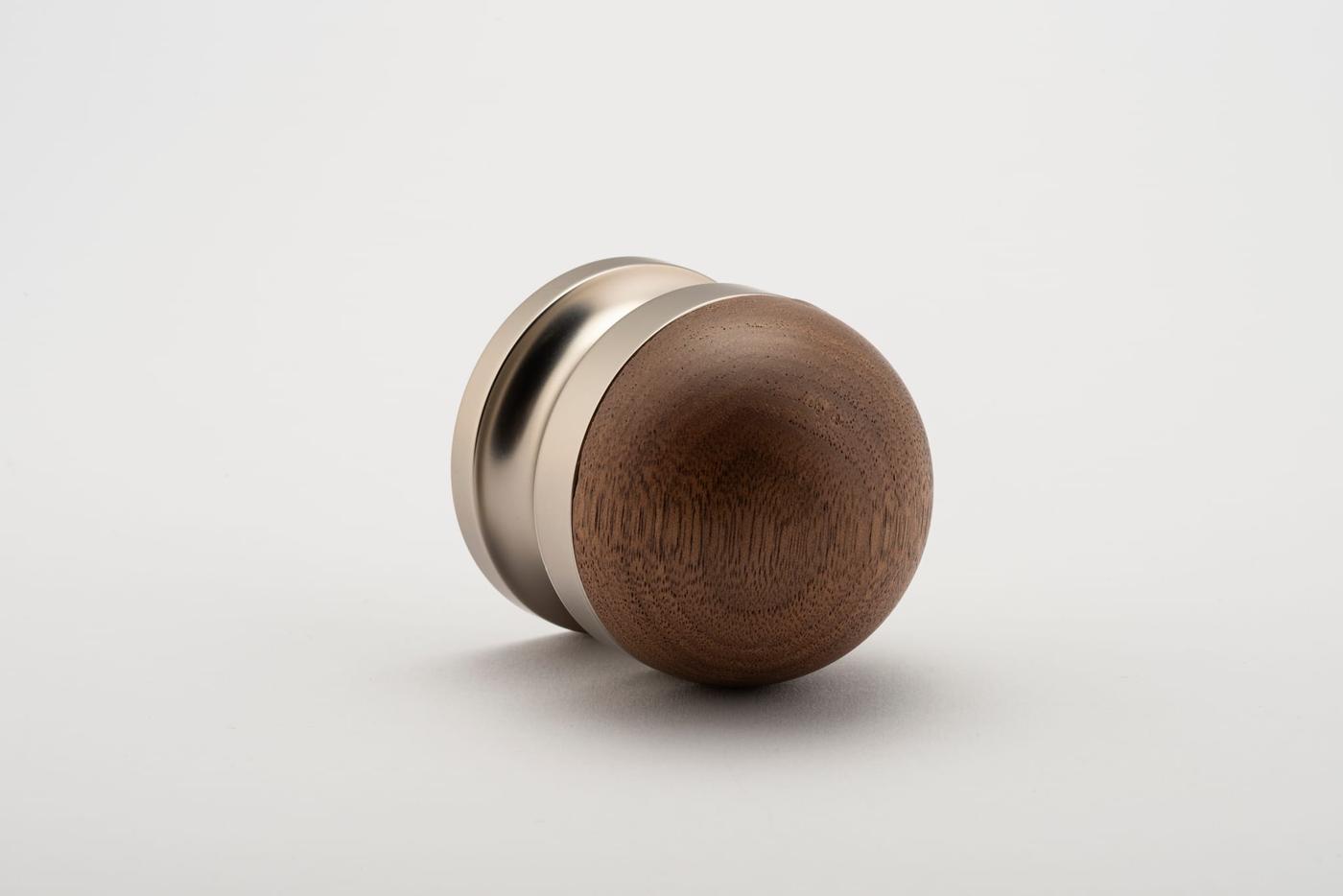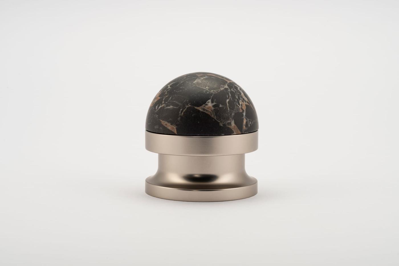 The H02 Knob on Rose is both compact and impactful, featuring a rose fitting, a connecting collar, and a sleek, dome-shaped top. Its carefully proportioned dome fits comfortably in the hand, ensuring a secure grip.