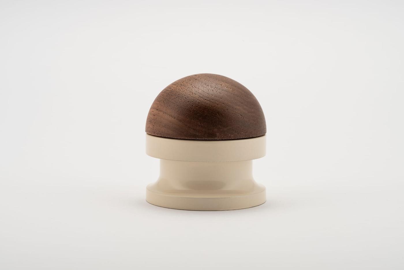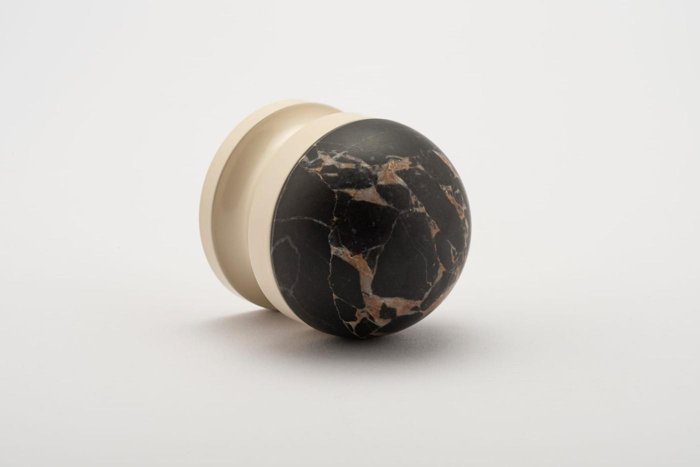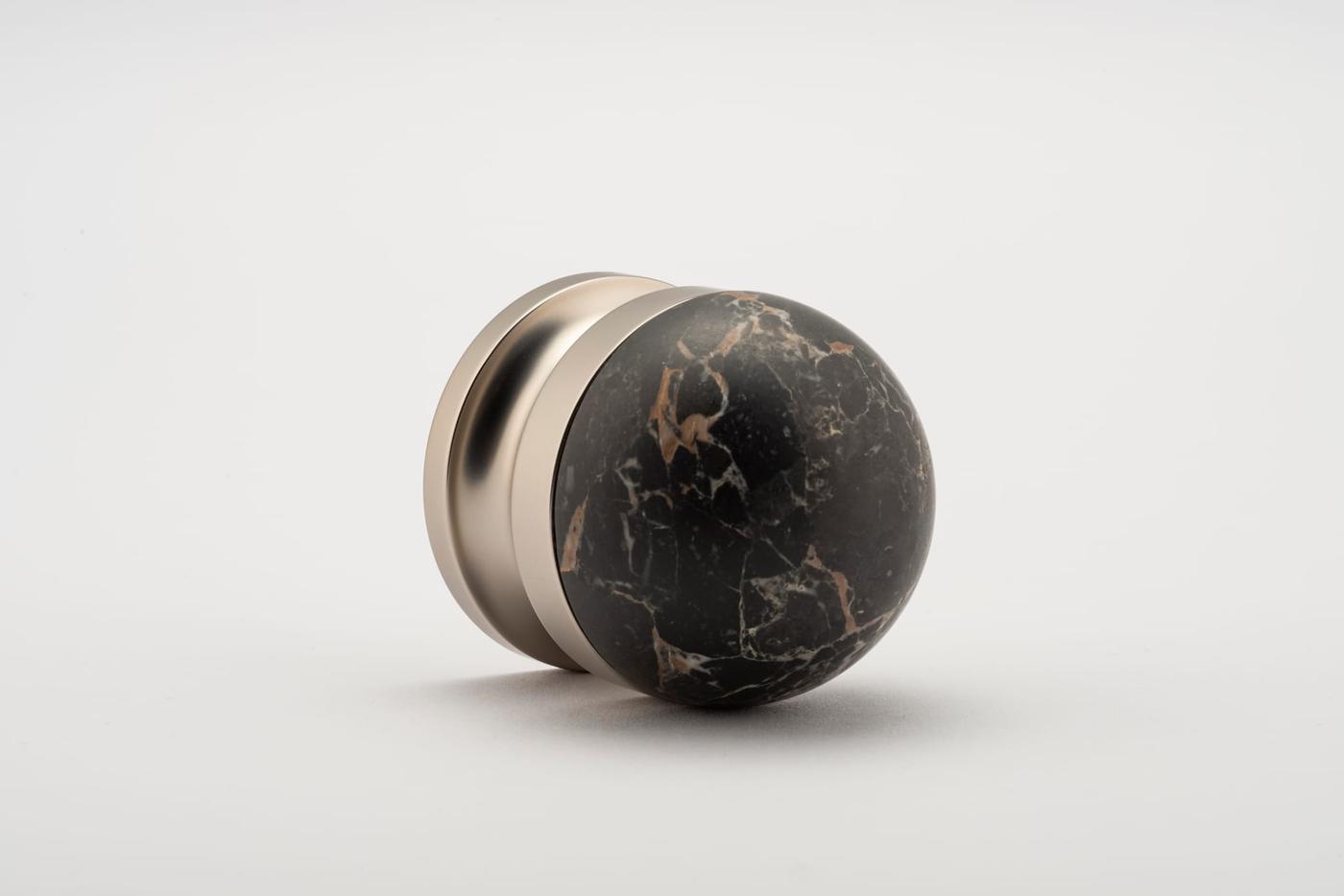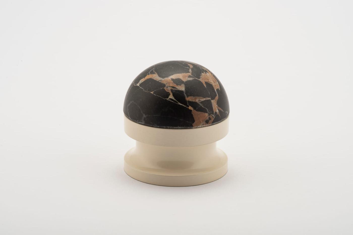 The H02 Knob on Rose is both compact and impactful, featuring a rose fitting, a connecting collar, and a sleek, dome-shaped top. Its carefully proportioned dome fits comfortably in the hand, ensuring a secure grip.