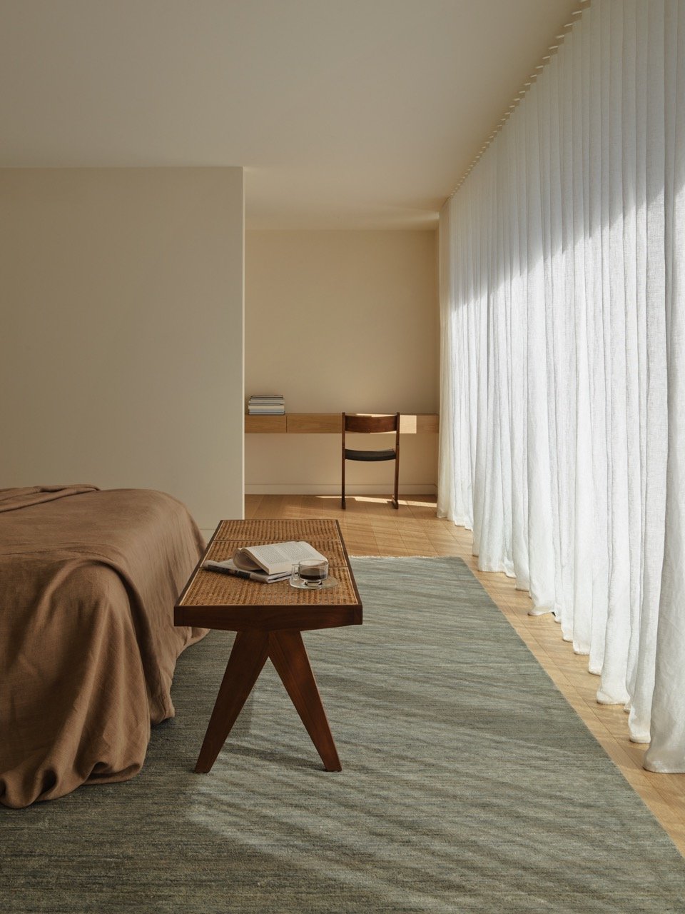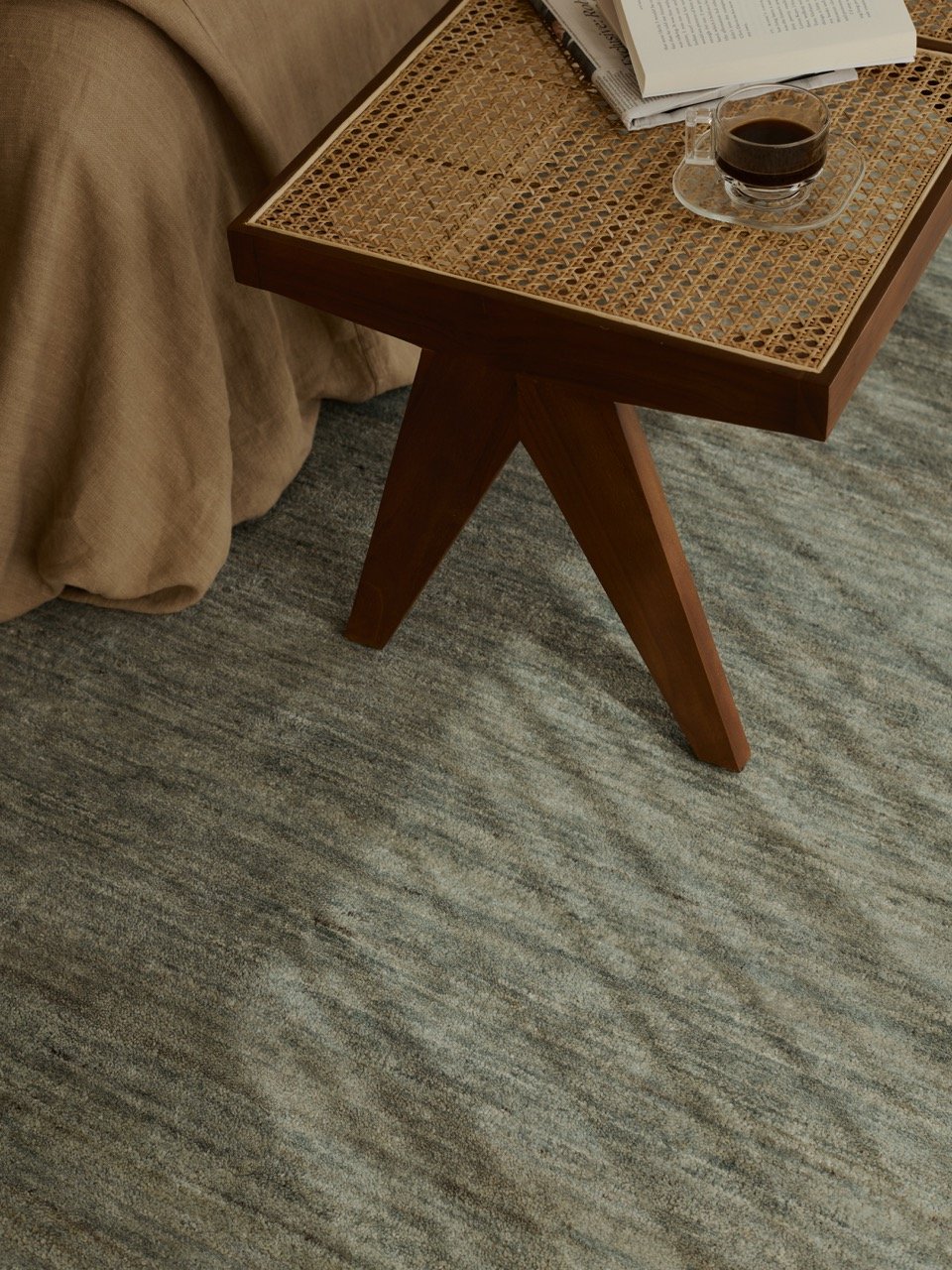 Odessa is hand-knotted from soft Afghan wool, this rug’s exquisite palettes and textural intricacies evoke a sensorial calm. No two are exactly the same, as each hank of the natural yarn features mesmerising striations once solid-dyed and woven into form.