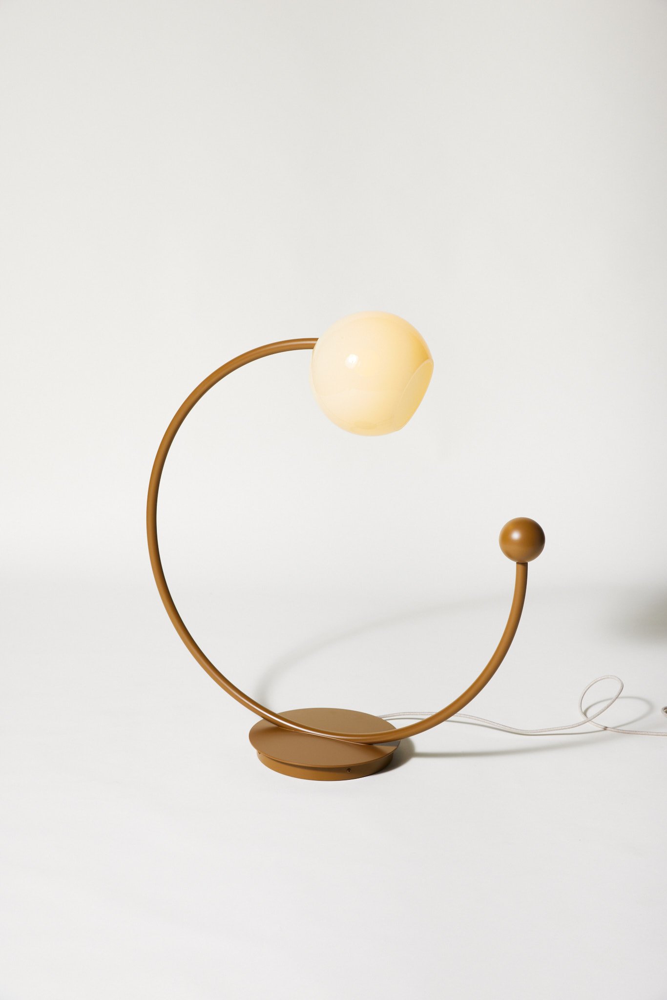 The Oro Lamp series is a result of Lawrence’s process-led design practice finding compositional inspiration from the iconic Ouroboros snake symbol. This lamp intends to marry form and function. Offering a delicate form to compliment the graphic shapes.