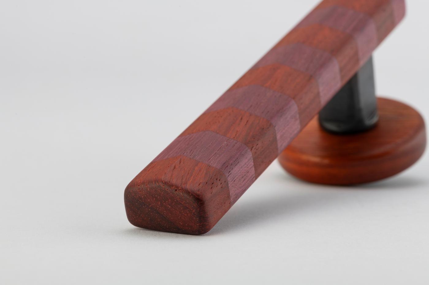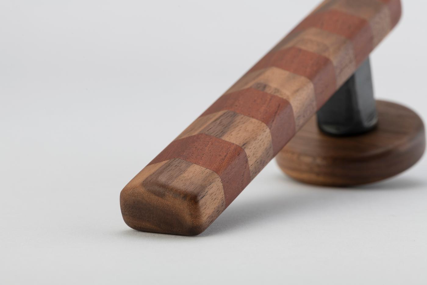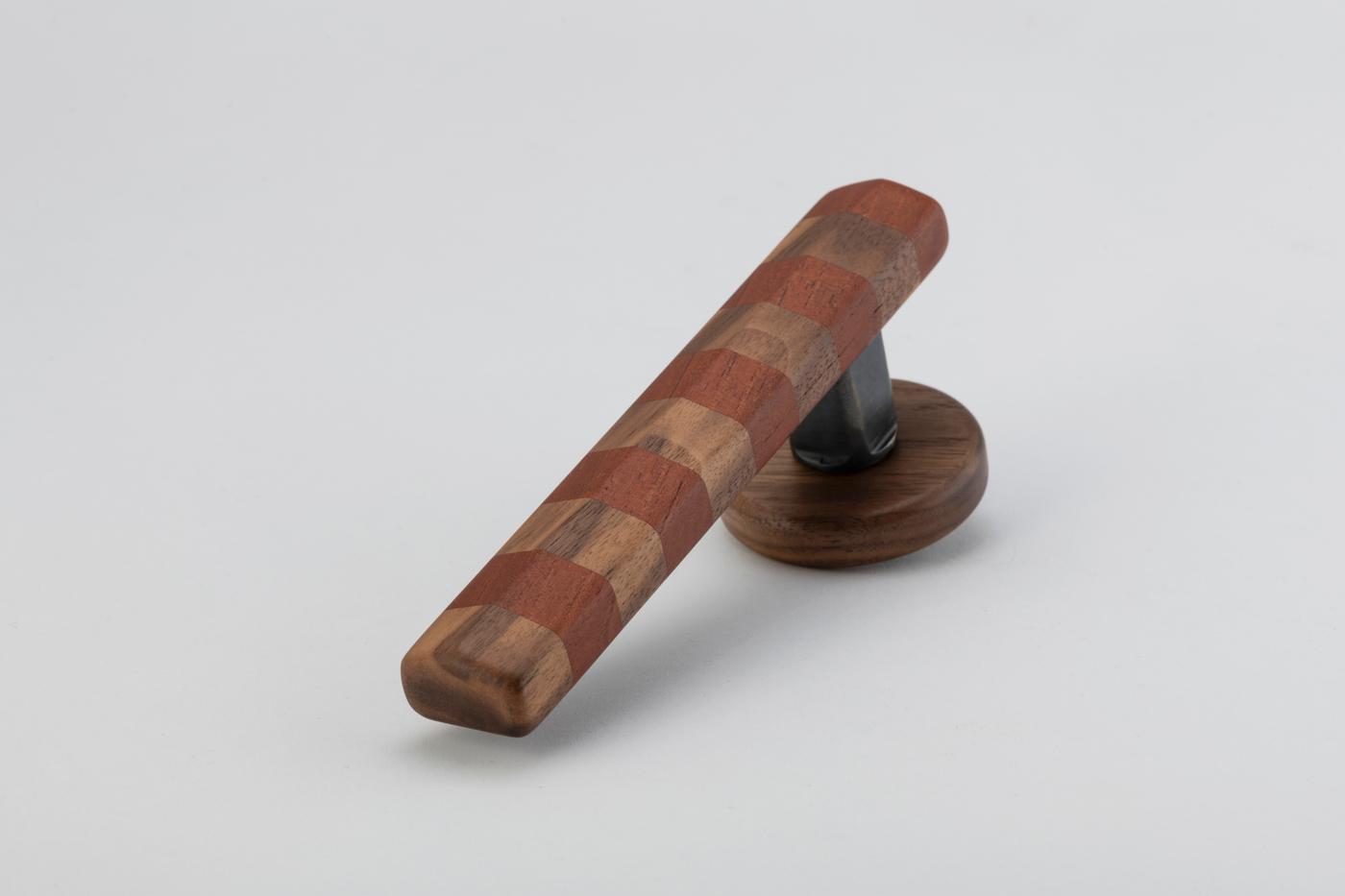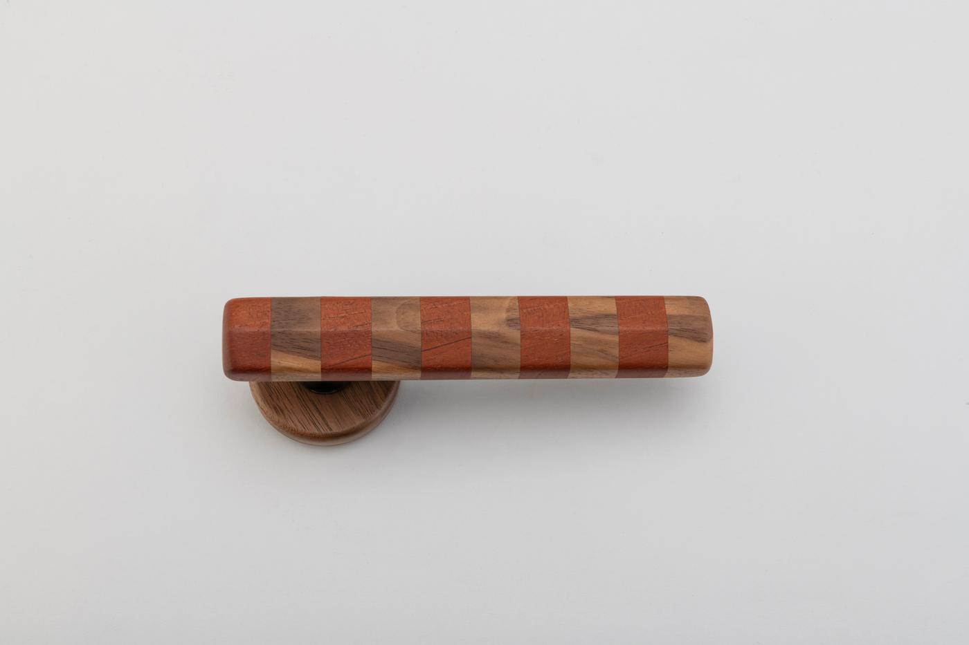 Like its name suggests, this universal lever plays on the term ‘straight shooter’ given its easy-to-grab horizontal plane. Superbly crafted from solid timber species that span the globe, it is offered in three different striped colourways.