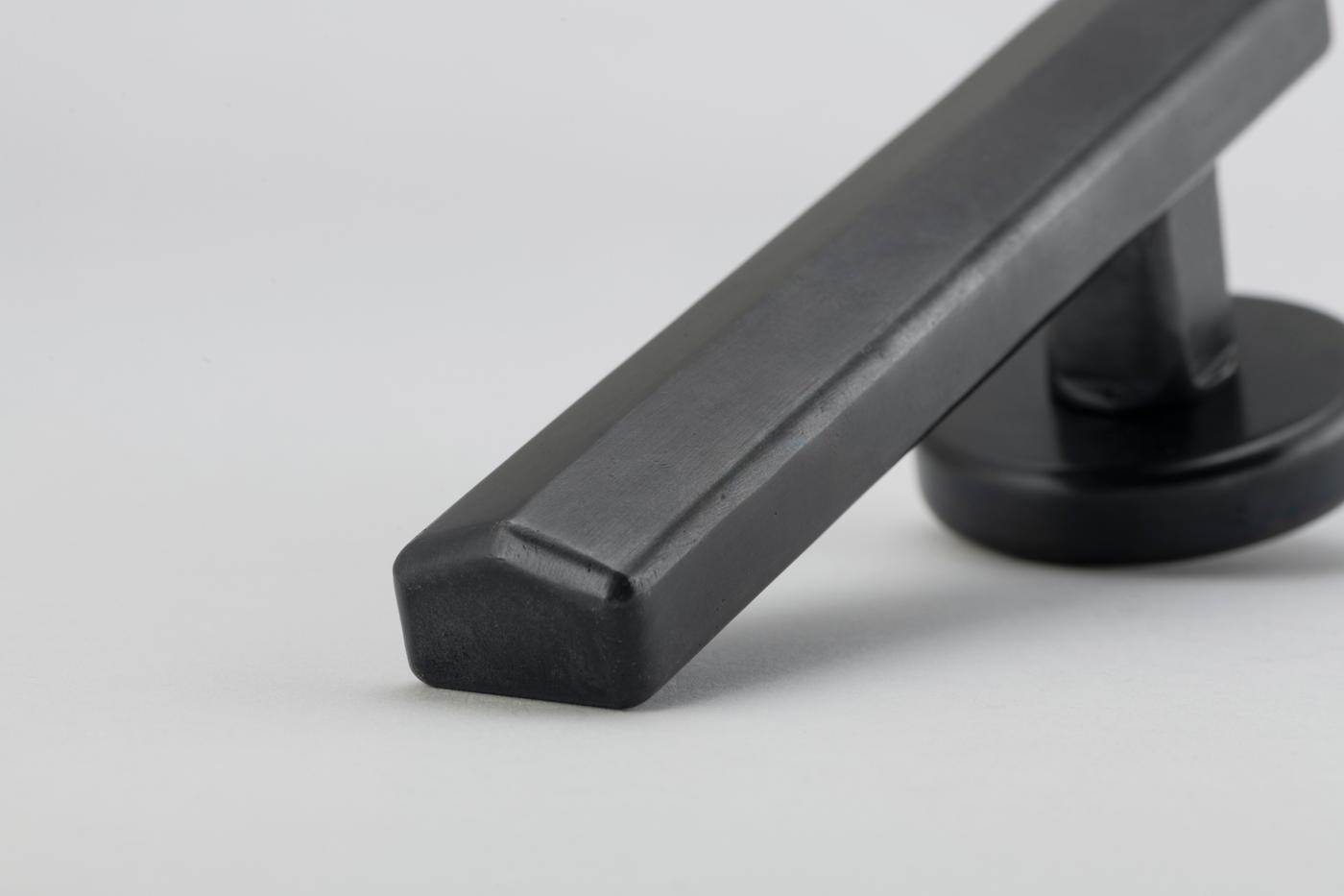 Smooth and warm upon contact, its subtle angled profile elevates every door it adorns. Also available in Patinated Bronze, along with a Return version for hospitality and commercial purposes. Patinated Bronze pieces are suitable for internal and external use.