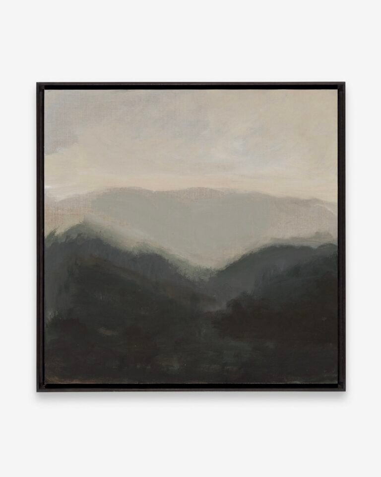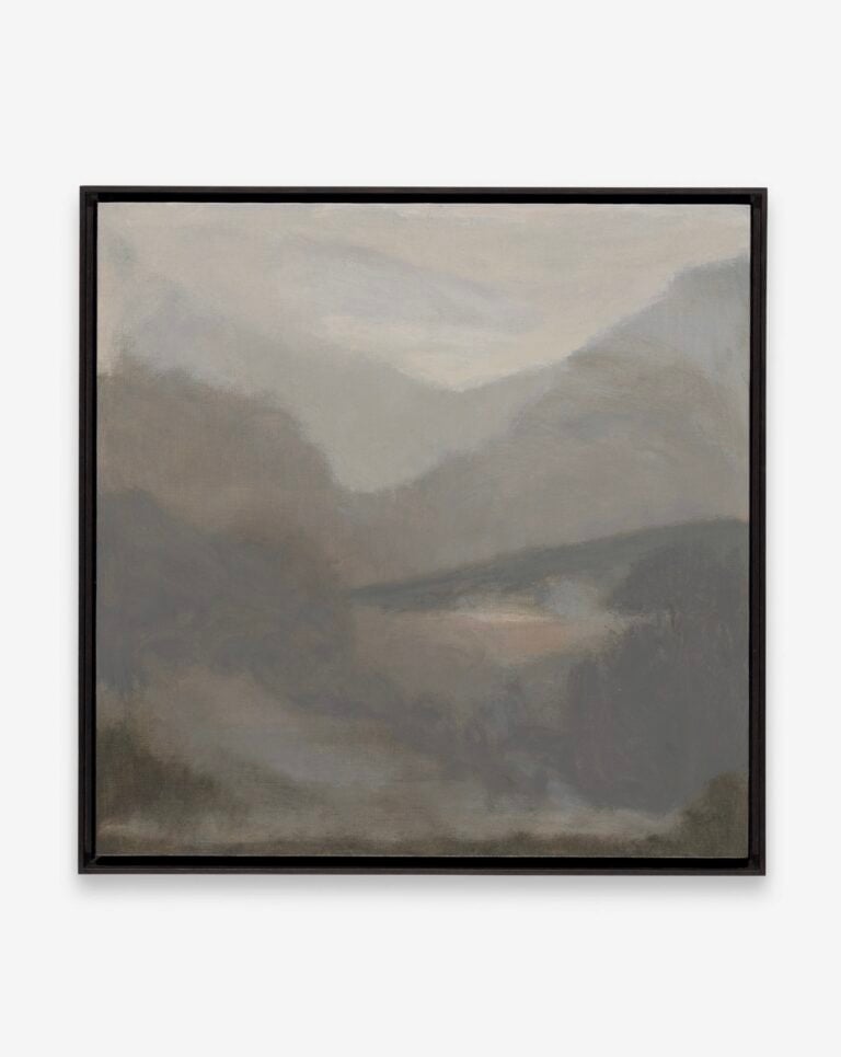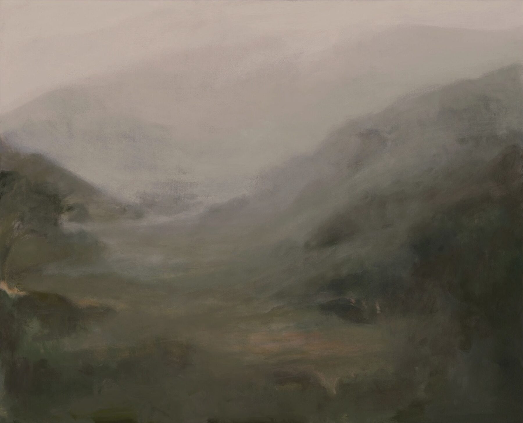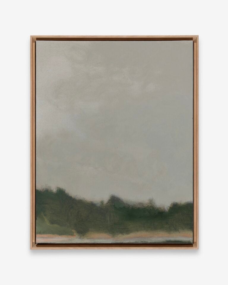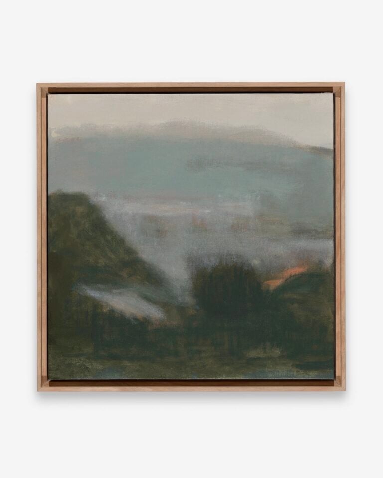 Wood’s work is not focused on recording the world through observation. Instead, it seeks to evoke the emotional tone of place as it is felt and remembered. These landscapes are drawn from memory and shaped over time by intuition rather than direct experience. Often quiet, ethereal and dreamlike, the paintings are defined by muted tones, diffused light and a reflective stillness. They encourage a slowing down, inviting deeper engagement and contemplation.